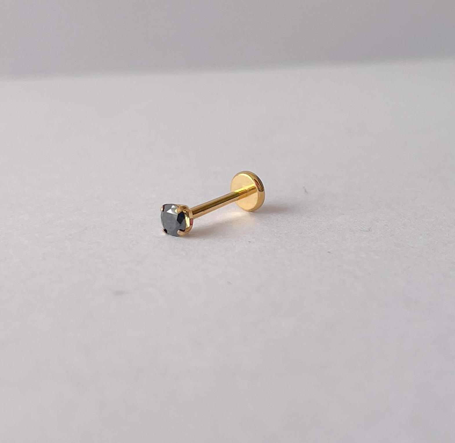 Refined black marble studs set in polished stainless steel. Hypoallergenic and perfect for multiple ear and facial piercings.