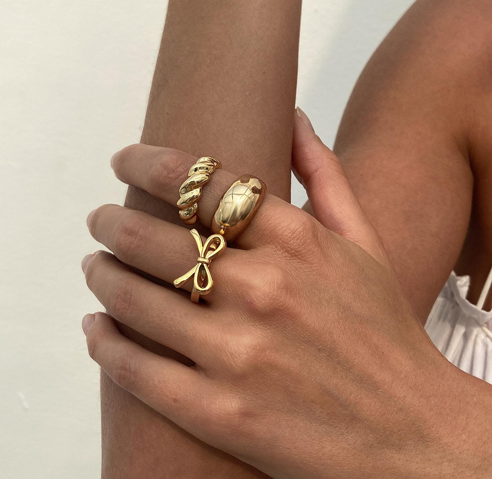 Stainless Steel Bow chunky ring set