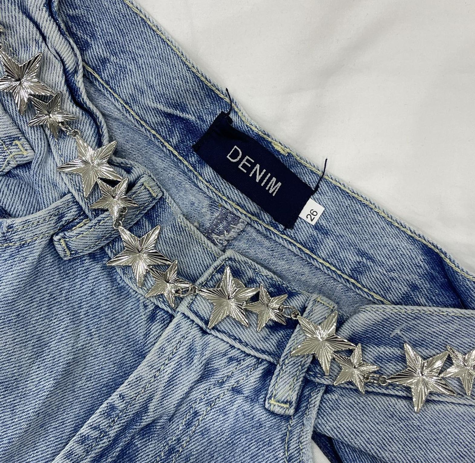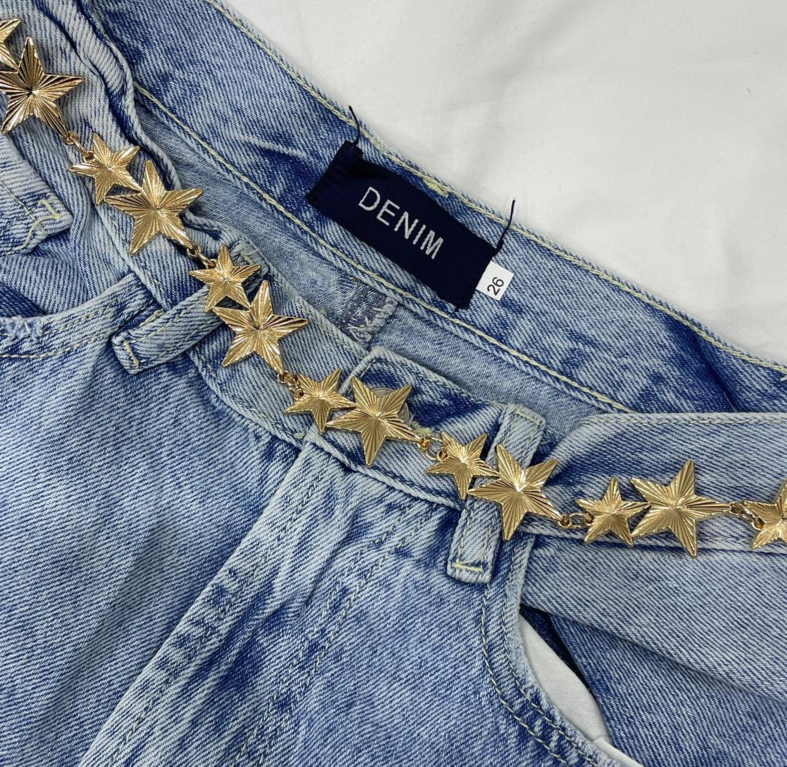 Transform your denim and casual looks with this enchanting star-link chain belt featuring detailed celestial motifs in radiant gold or polished silver. The perfect statement piece to add cosmic glamour and define your waistline with stellar style.
