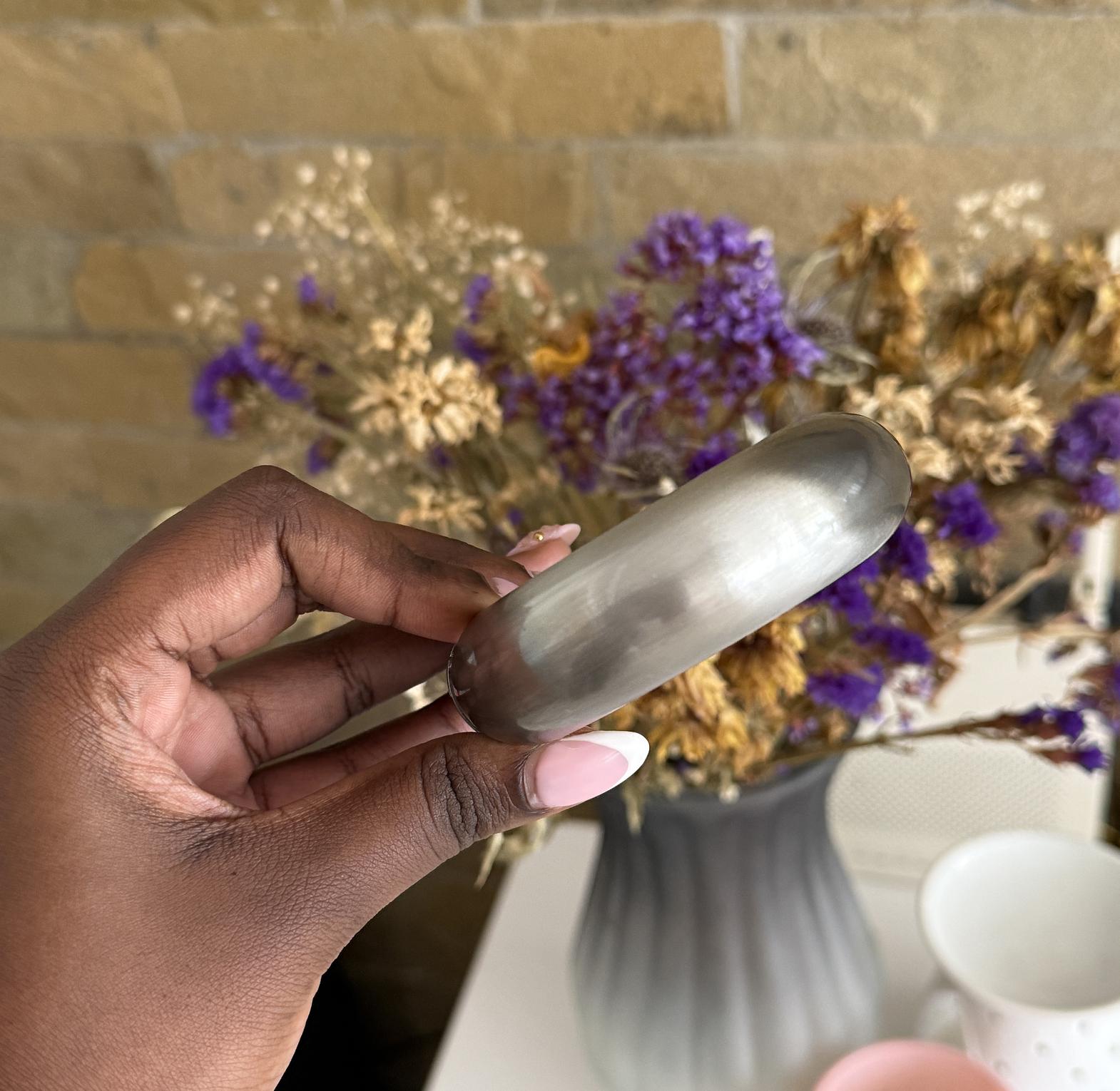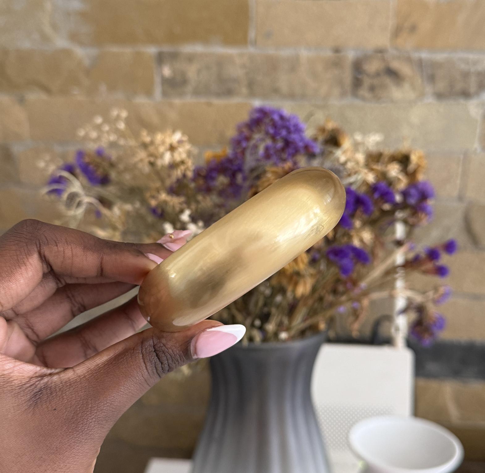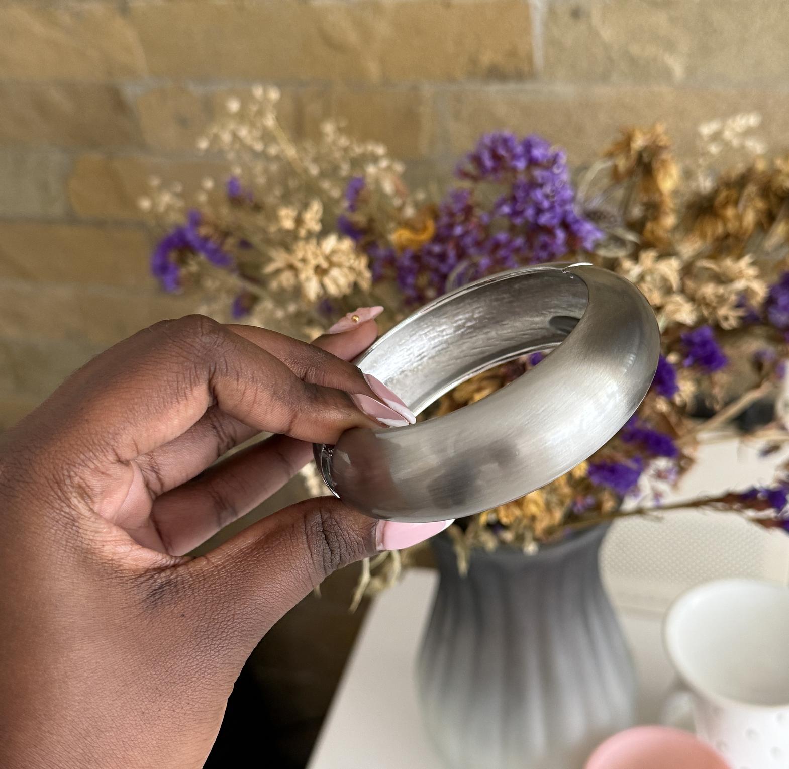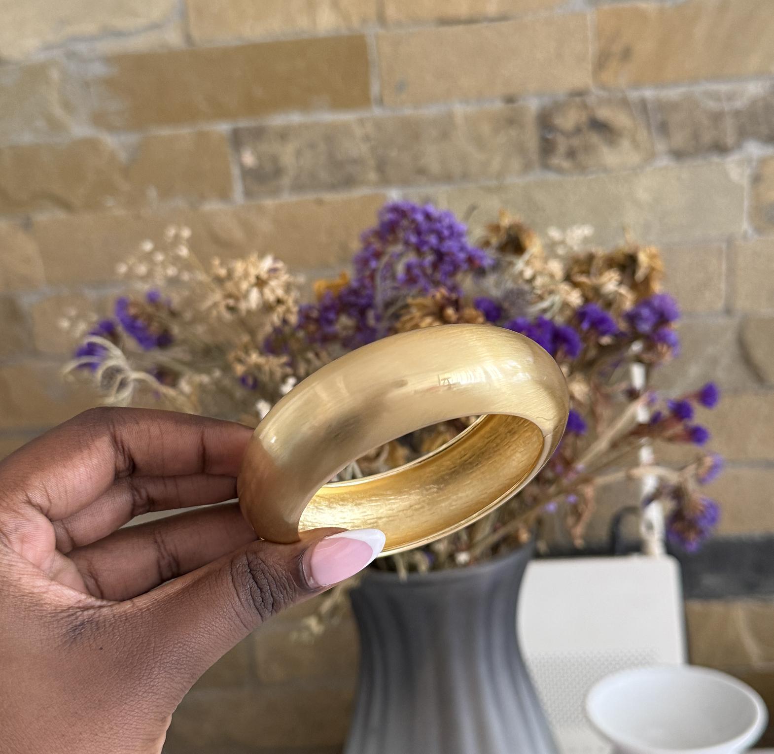 Smooth bangle with a brass feel finish.