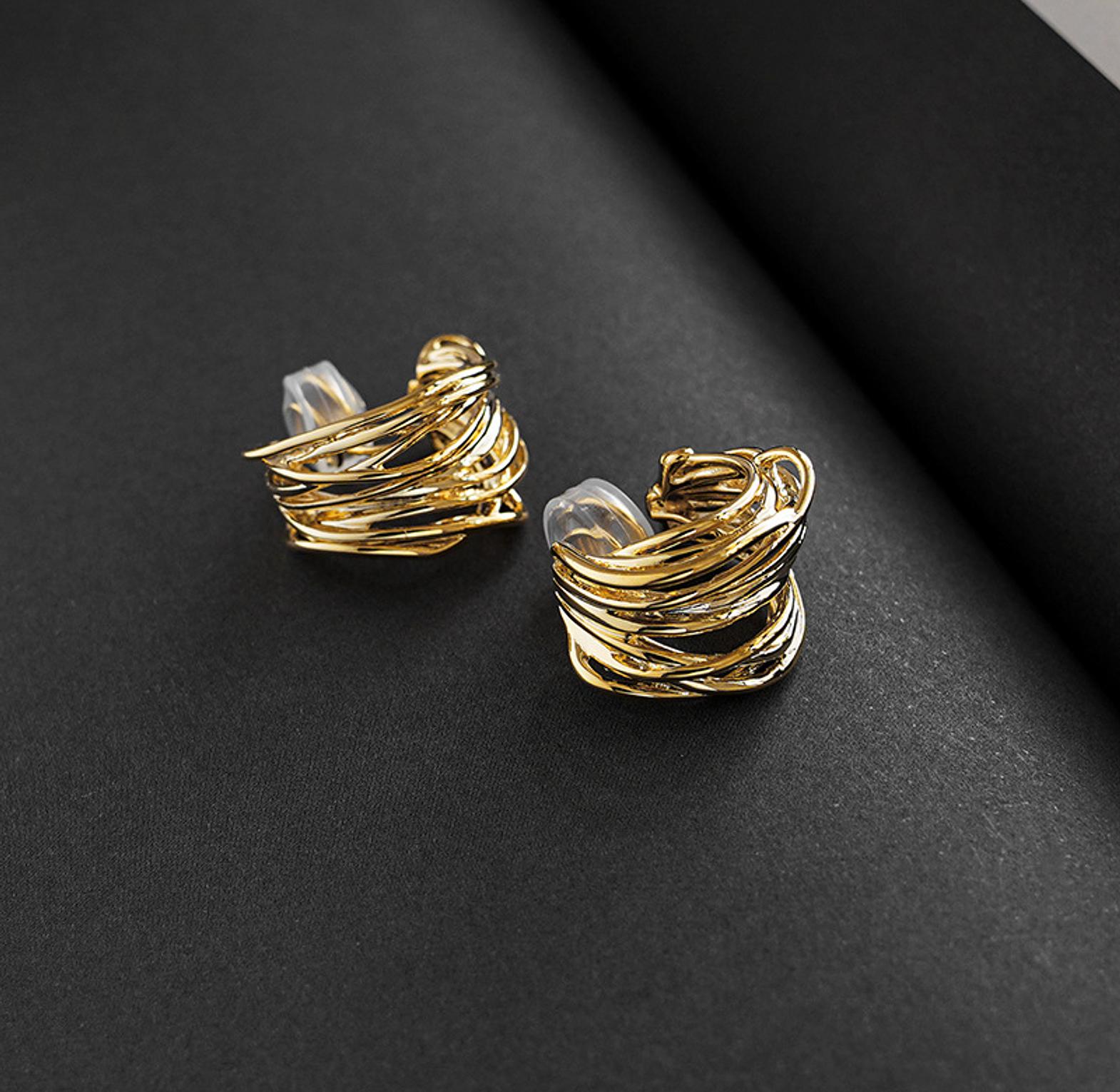 No piercing required textured exaggerated ear clips. Perfect to style with different jewellery.