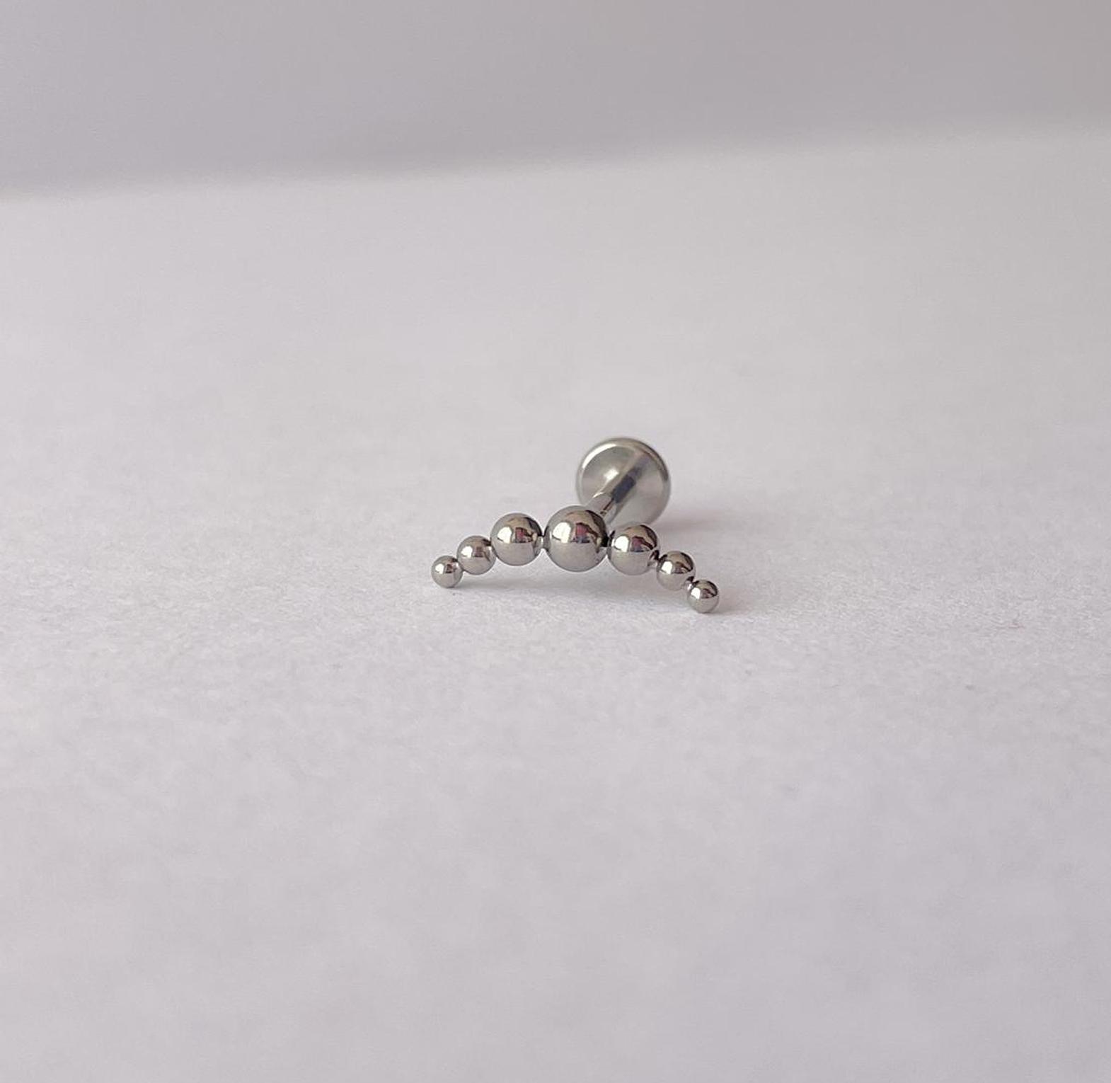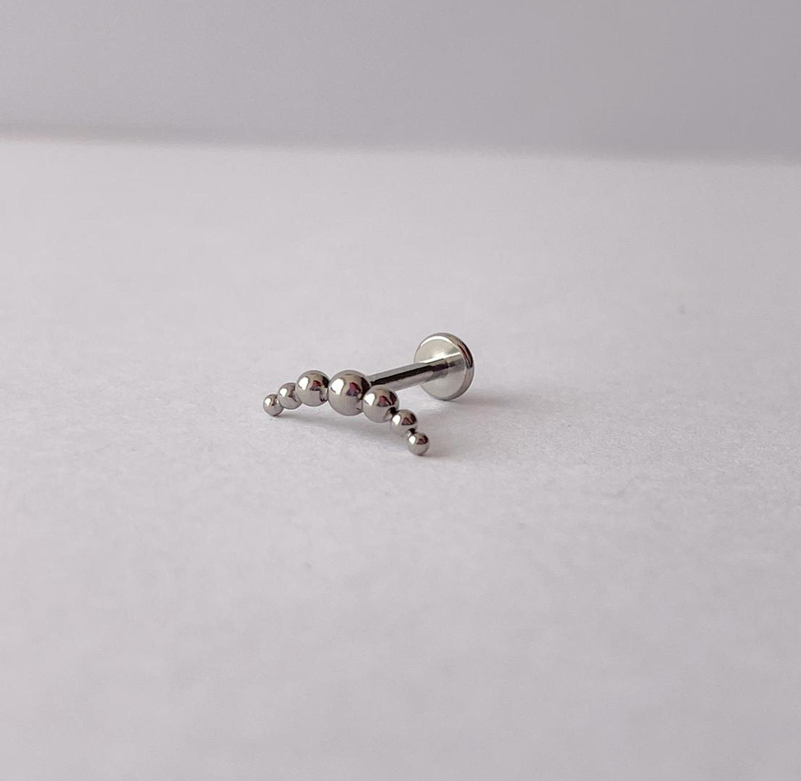 A curved labret stud with a polished micro ball finish. Designed for comfort and a modern minimalist look across multiple piercing types.