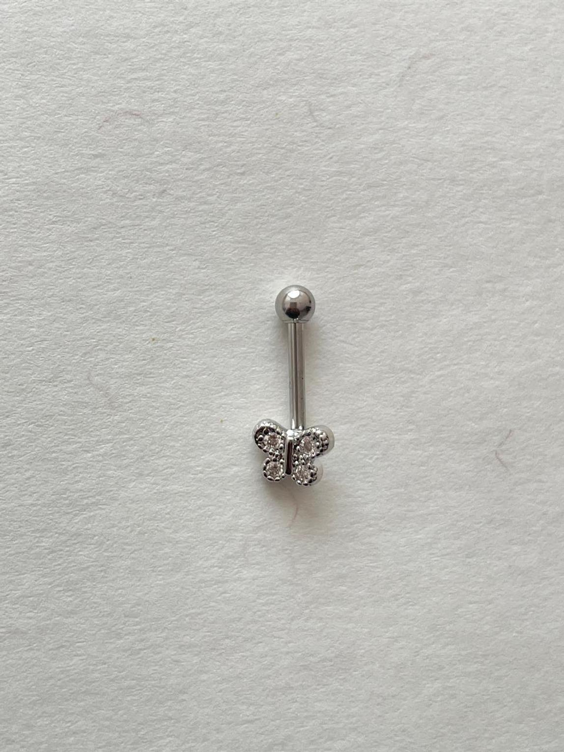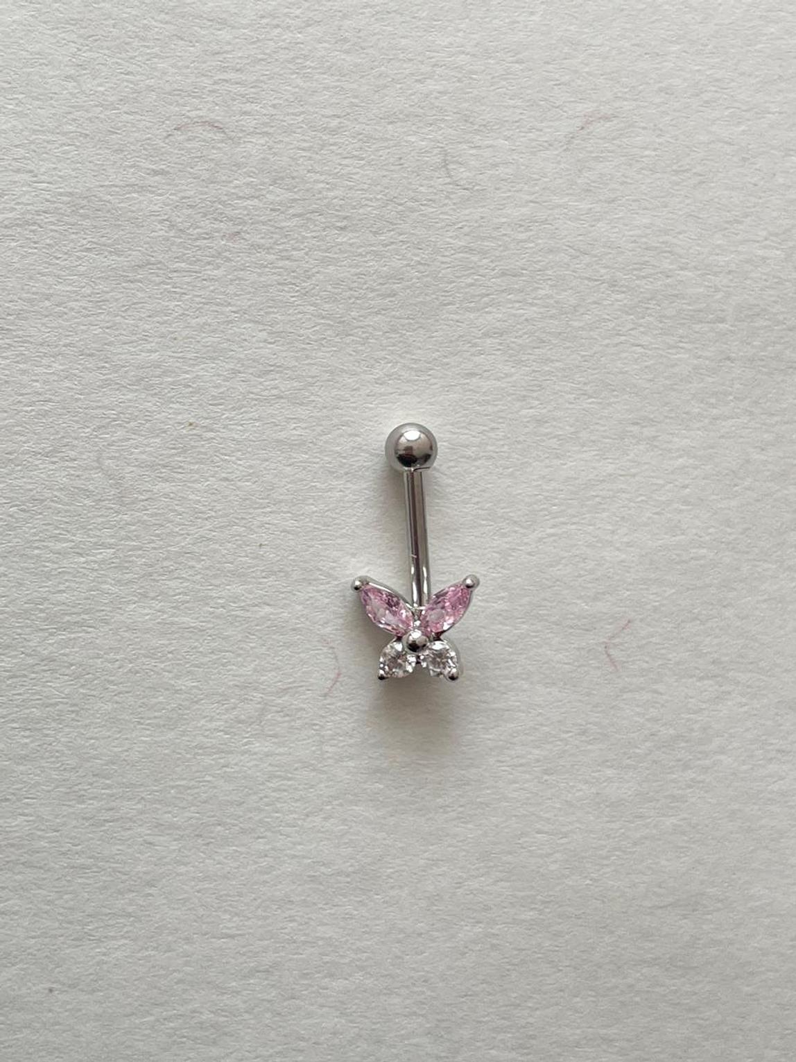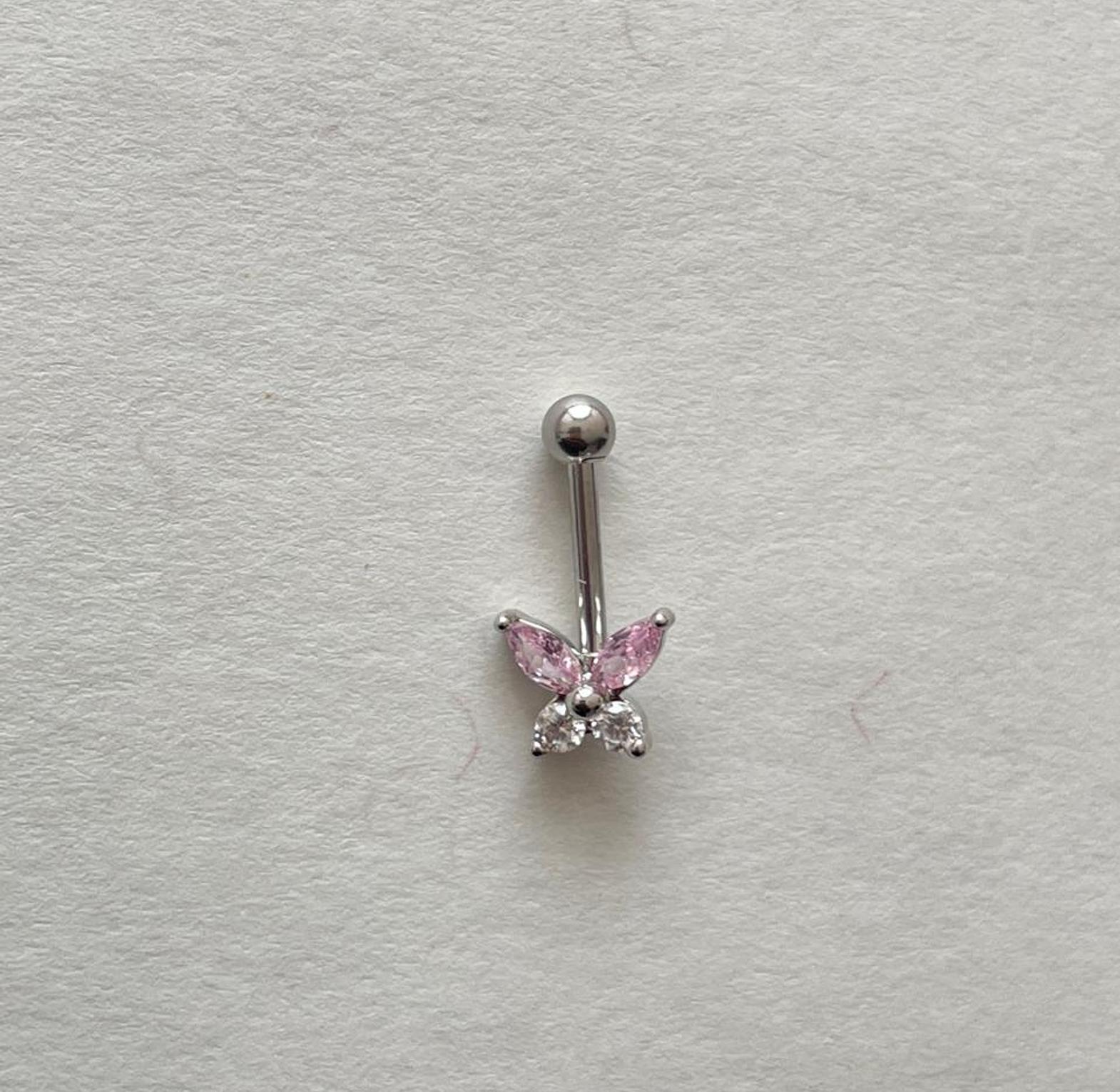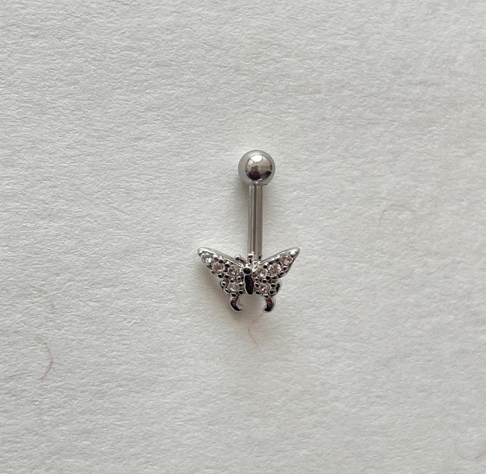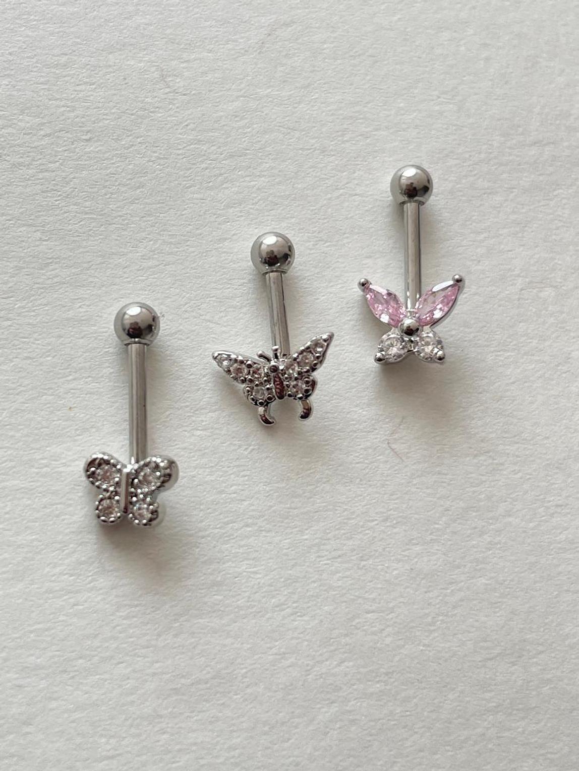 Flutter into style with these charming silver-toned helix piercing studs, featuring delicate butterfly designs adorned with clear or pink cubic zirconia. Perfect for adding a whimsical, sparkling touch to your ear curation.