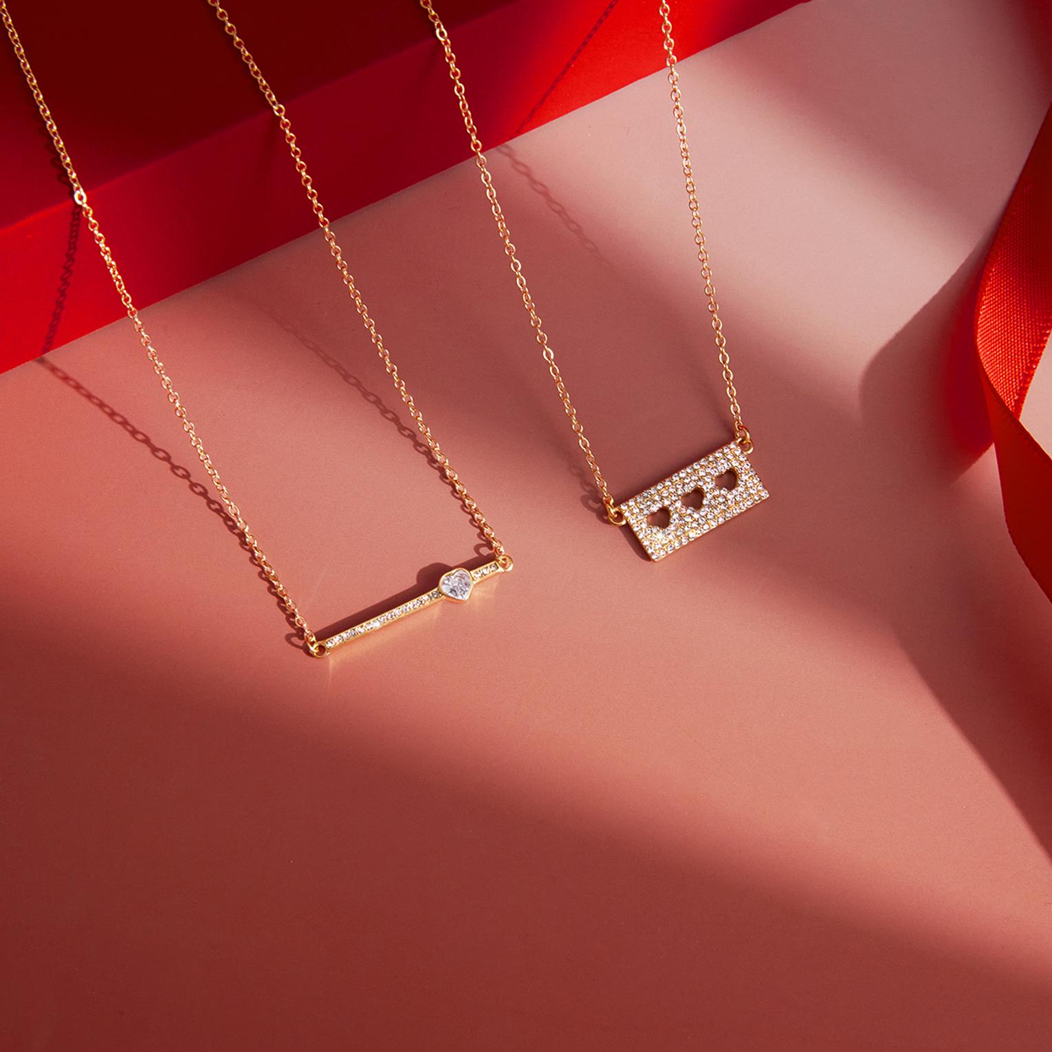 A delicate gold-toned necklace featuring a sleek bar and a charming heart for subtle, romantic elegance.