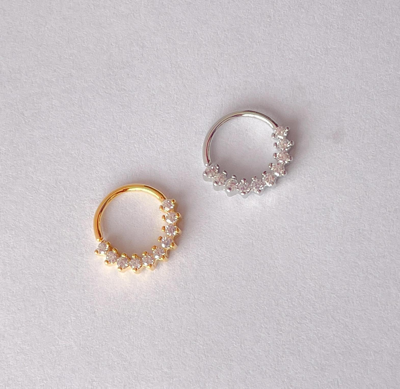 Enhance your piercing with this brilliant septum/nose ring, featuring a graceful arc of sparkling cubic zirconia. Available in lustrous gold and sleek silver.