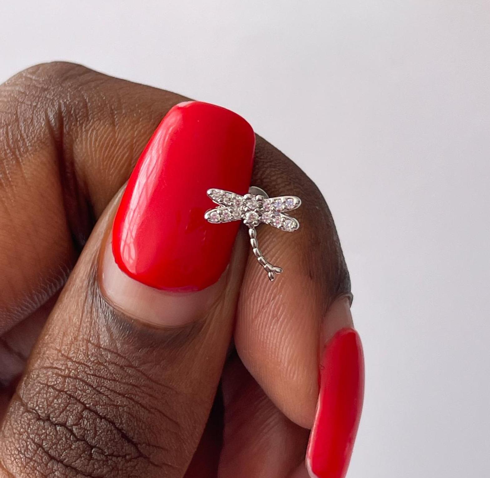 Capture the beauty of nature with this intricate dragonfly stud, adorned with sparkling cubic zirconia. Crafted from durable stainless steel, it adds an elegant and whimsical touch to your look.