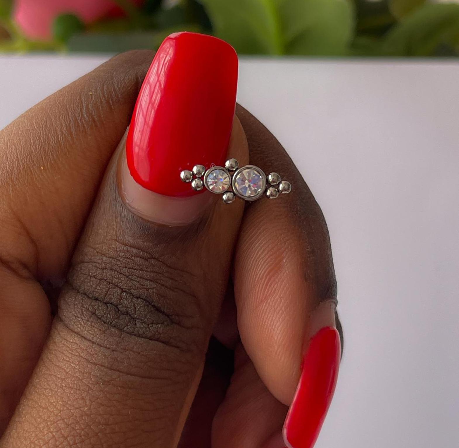 Elevate your style with this elegant flat back stud featuring two brilliant gems. Perfect for a touch of subtle sparkle, it's designed for comfortable and secure wear.