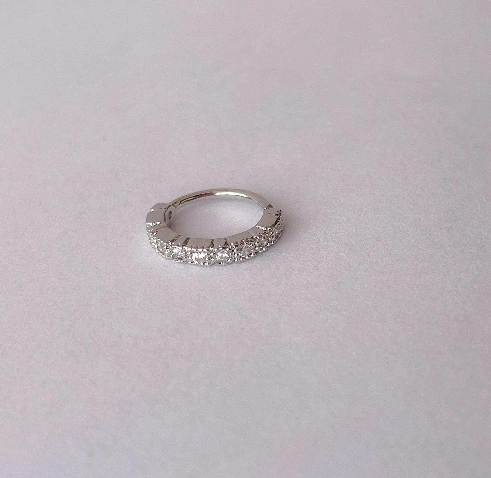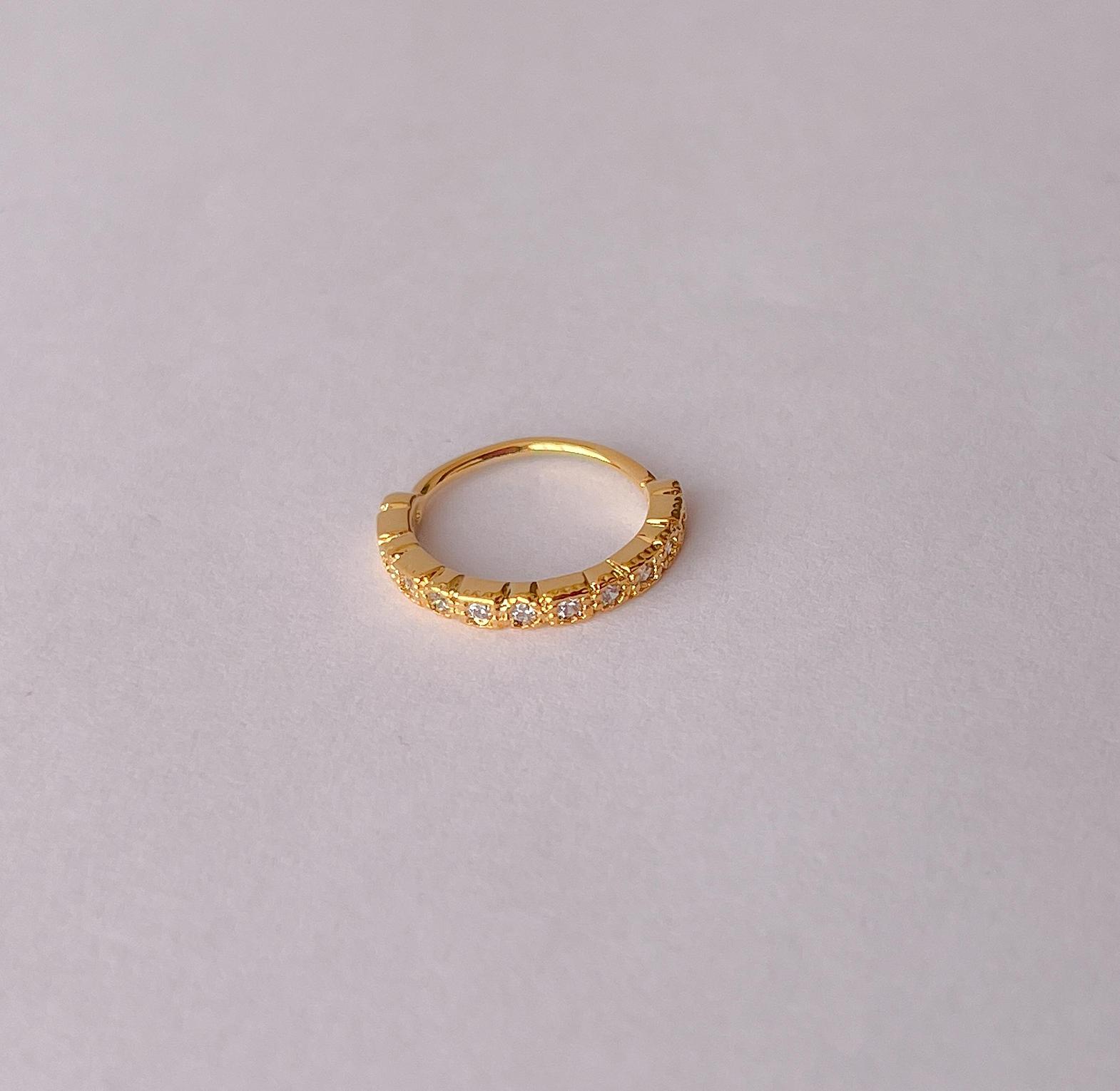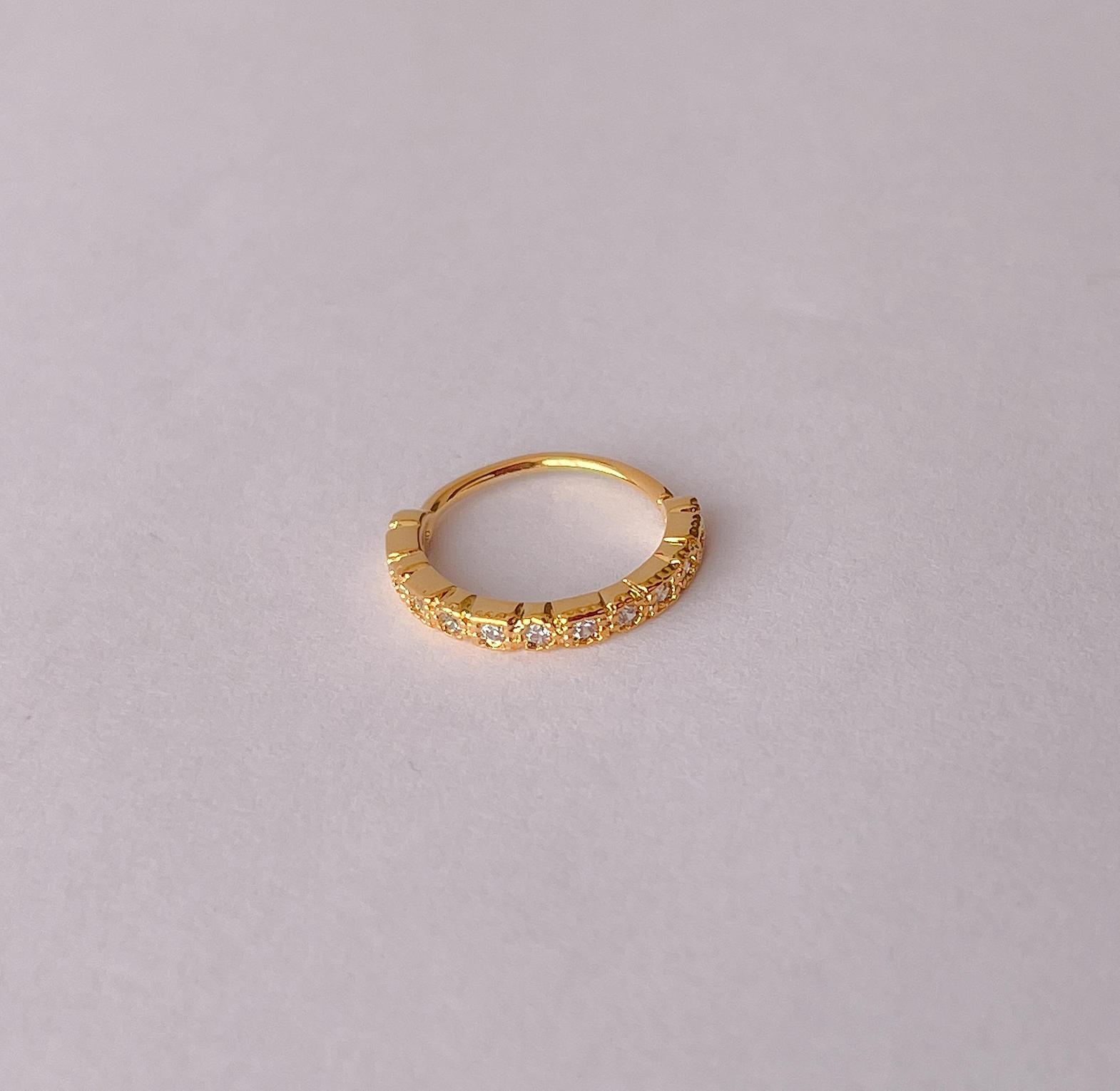 Adorn your piercing with this elegant septum ring, fully lined with brilliant cubic zirconia for continuous sparkle. Available in radiant gold, sleek silver, and romantic rose gold.