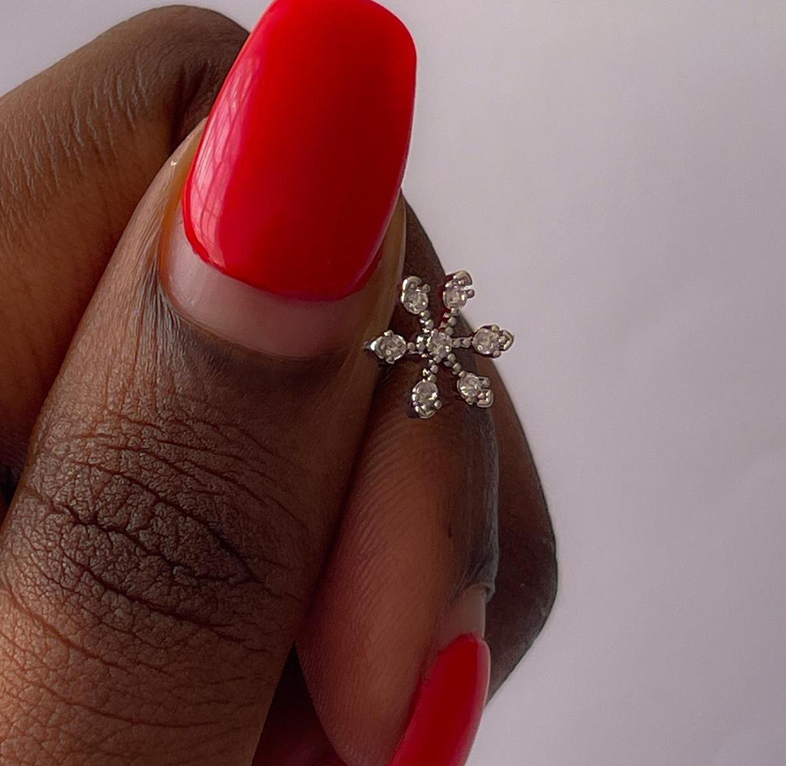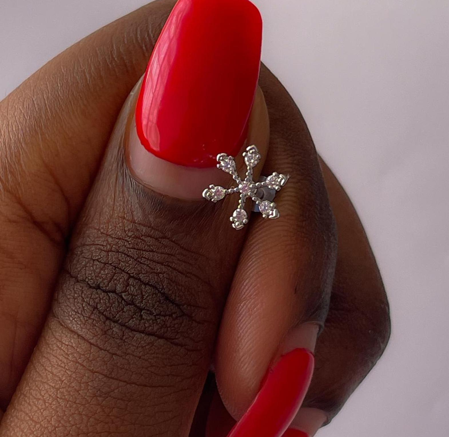 Embrace winter wonder with this exquisite snowflake stud, adorned with sparkling cubic zirconia. Crafted from durable stainless steel, it adds a touch of frosty elegance to any look.