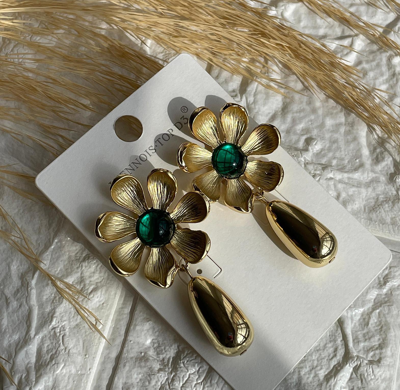Gold plated gold Studs with an emerald gem. The perfect earrings for a well put together outfit.