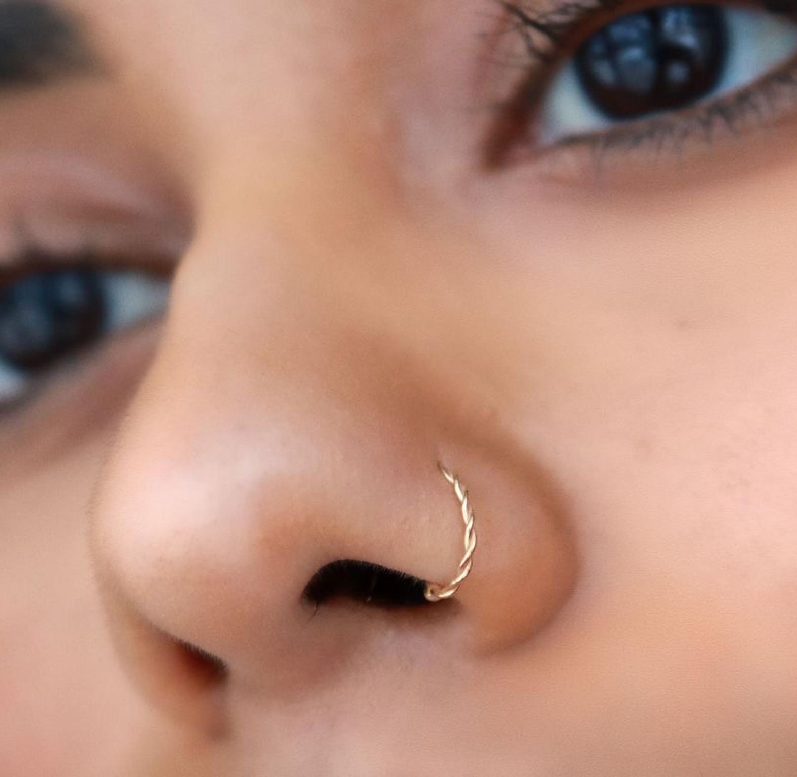 A fake hoop is a type of jewelry that simulates the look of a hoop jewelry without the need for a piercing.