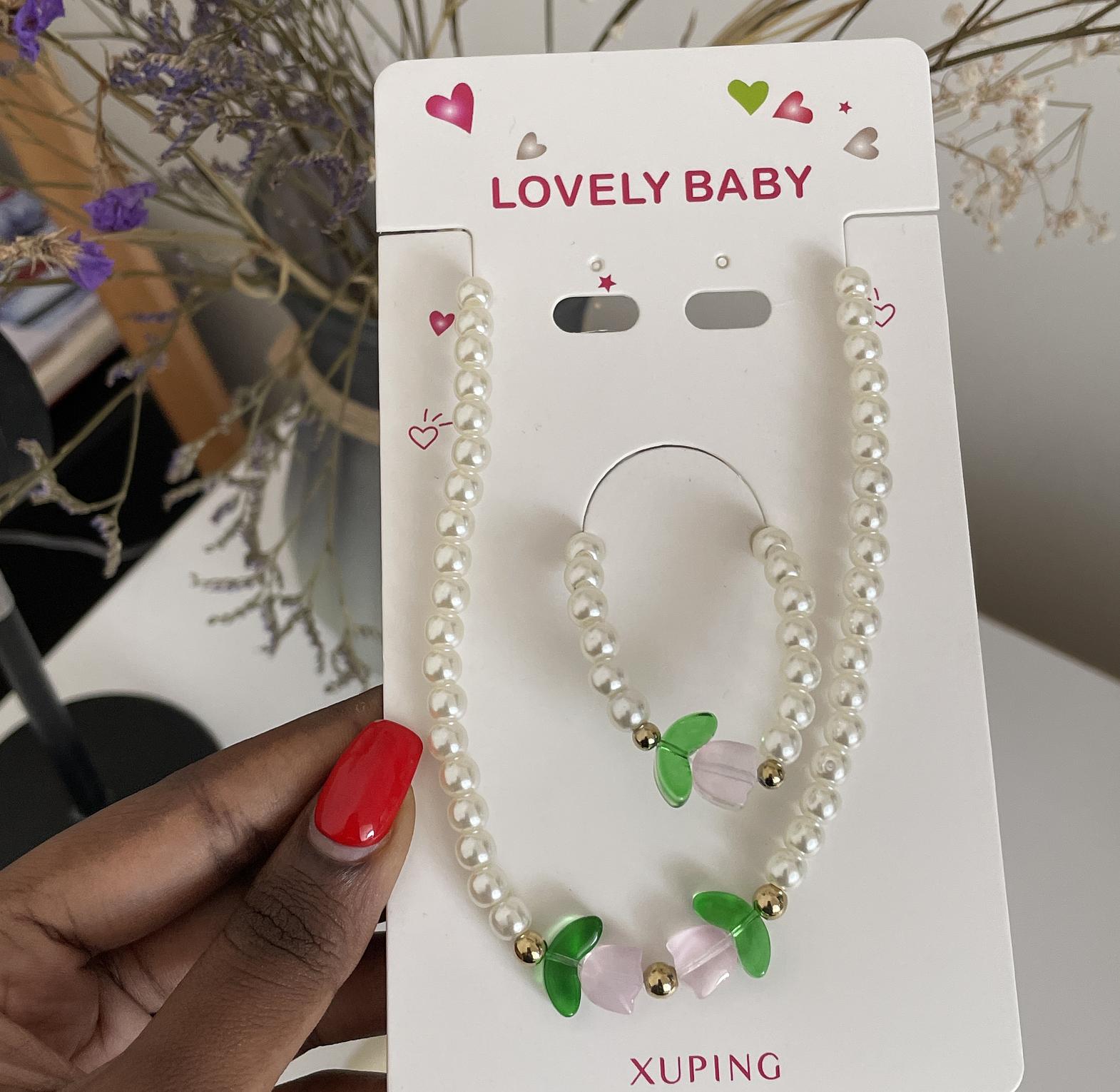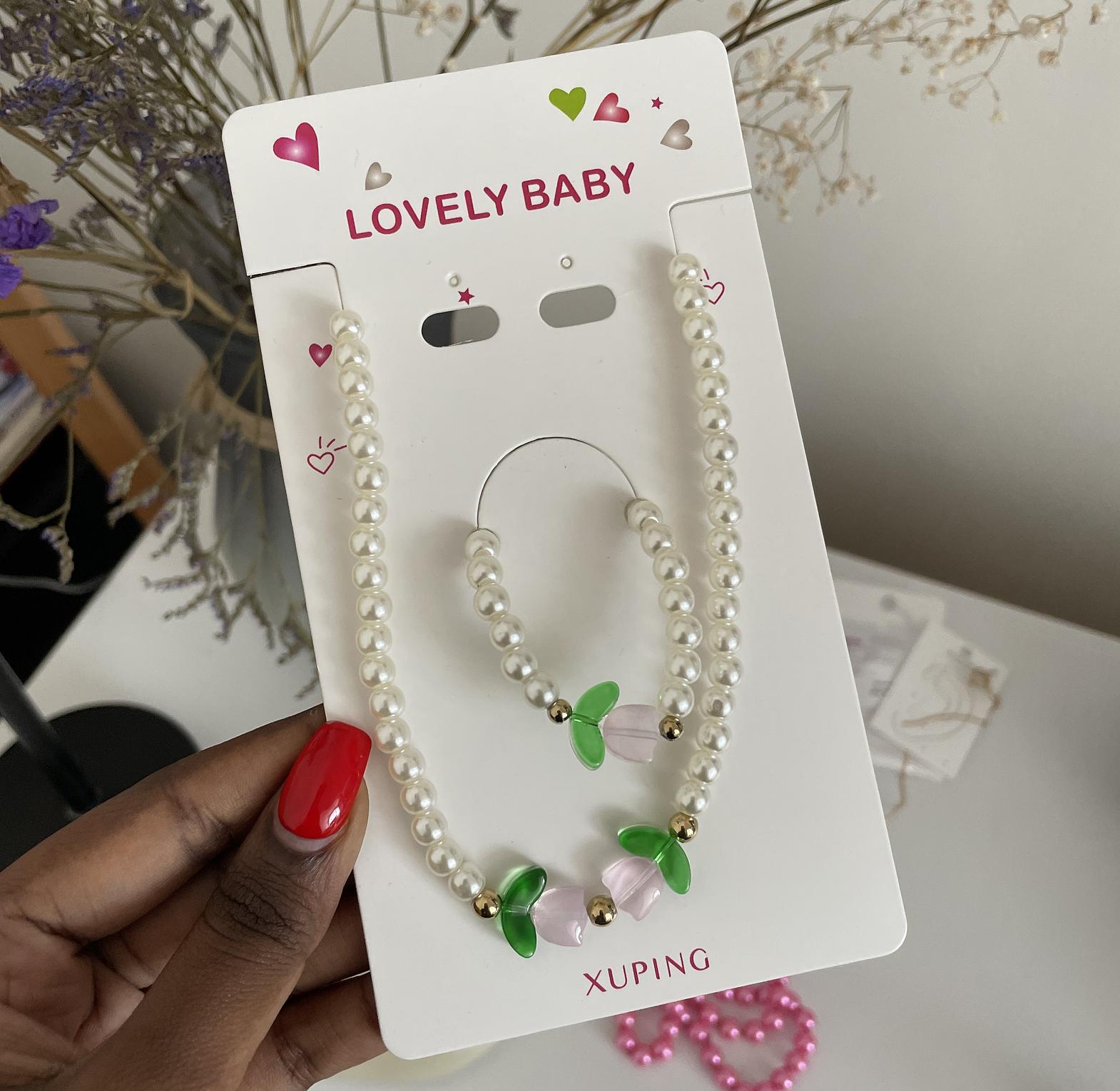 2 pcs tulip flower pendant chain. Comes as a matching set of bracelet and a necklace.