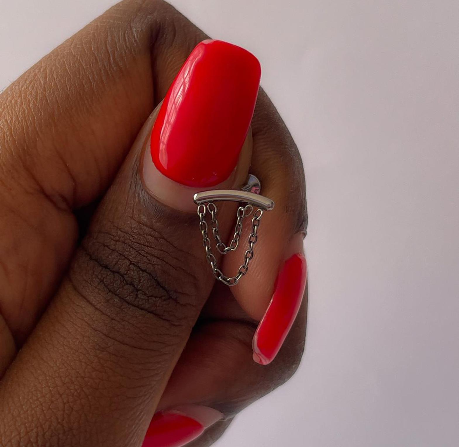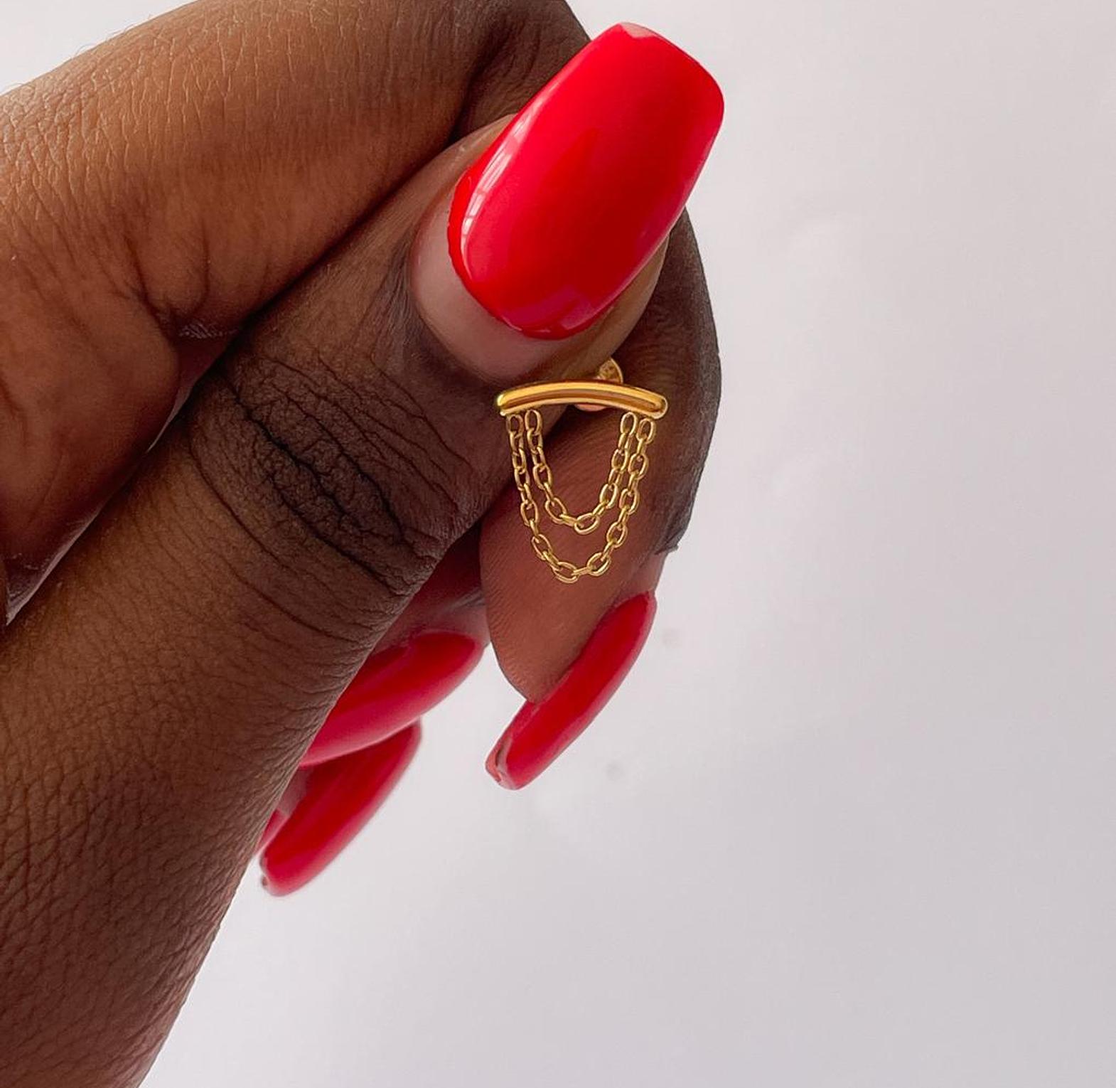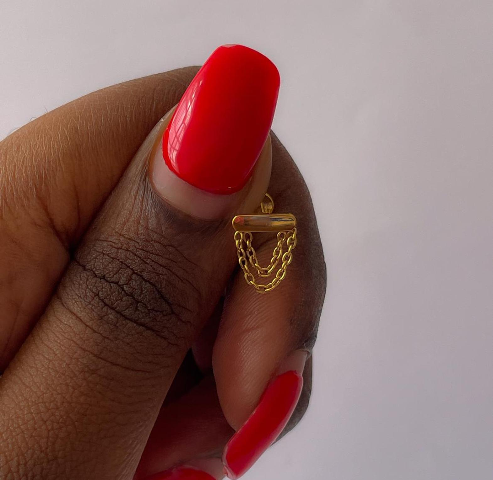 Elevate your piercing style with this exquisite golden draped chain labret. Crafted from high-quality titanium, it offers both elegance and comfort for everyday wear.