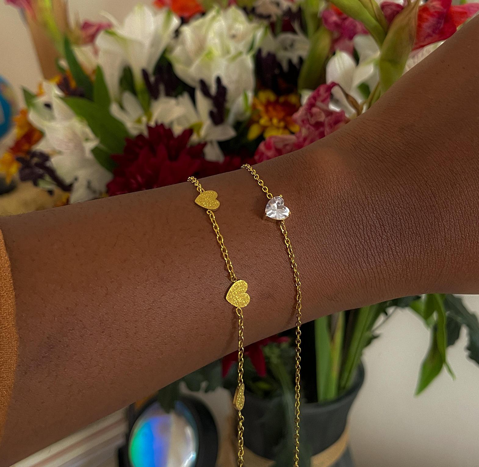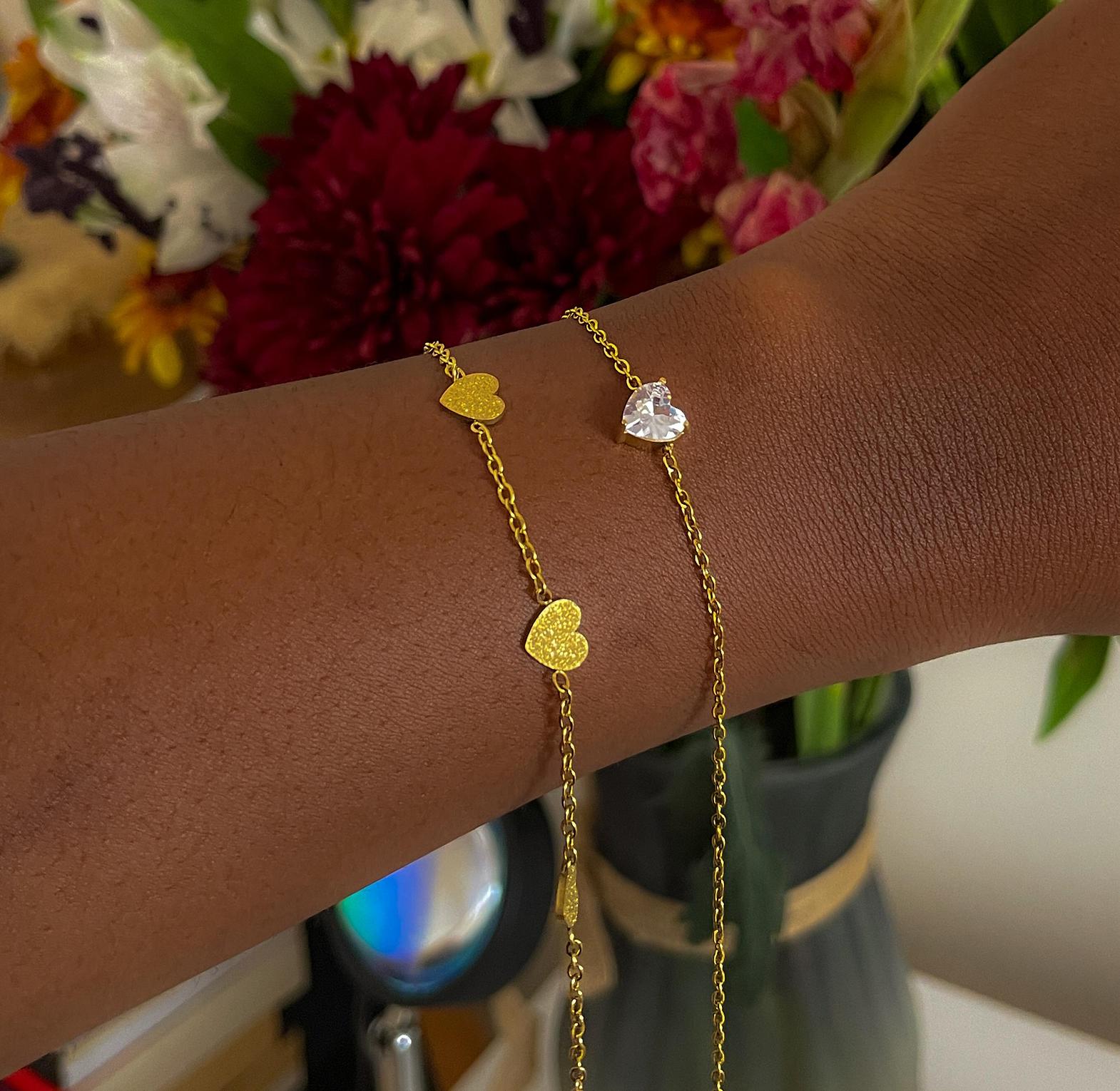Adorn your wrist with the captivating Golden Heartbeat & Radiance Bracelet, a symbol of enduring beauty and love. Its delicate design and brilliant sparkle make it a perfect everyday accessory or a thoughtful gift.