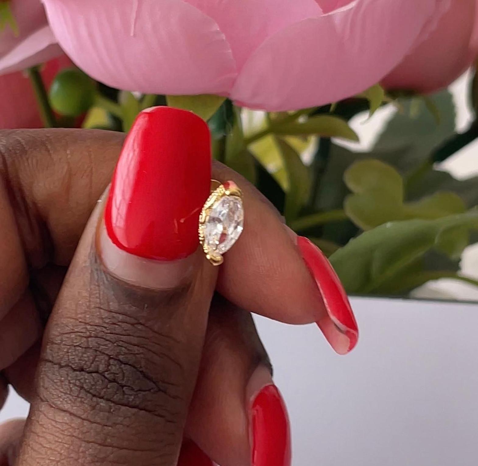 Command attention with this exquisite flat back stud featuring a brilliant marquise-cut cubic zirconia. Its elegant design adds a touch of timeless sophistication and luxurious sparkle.