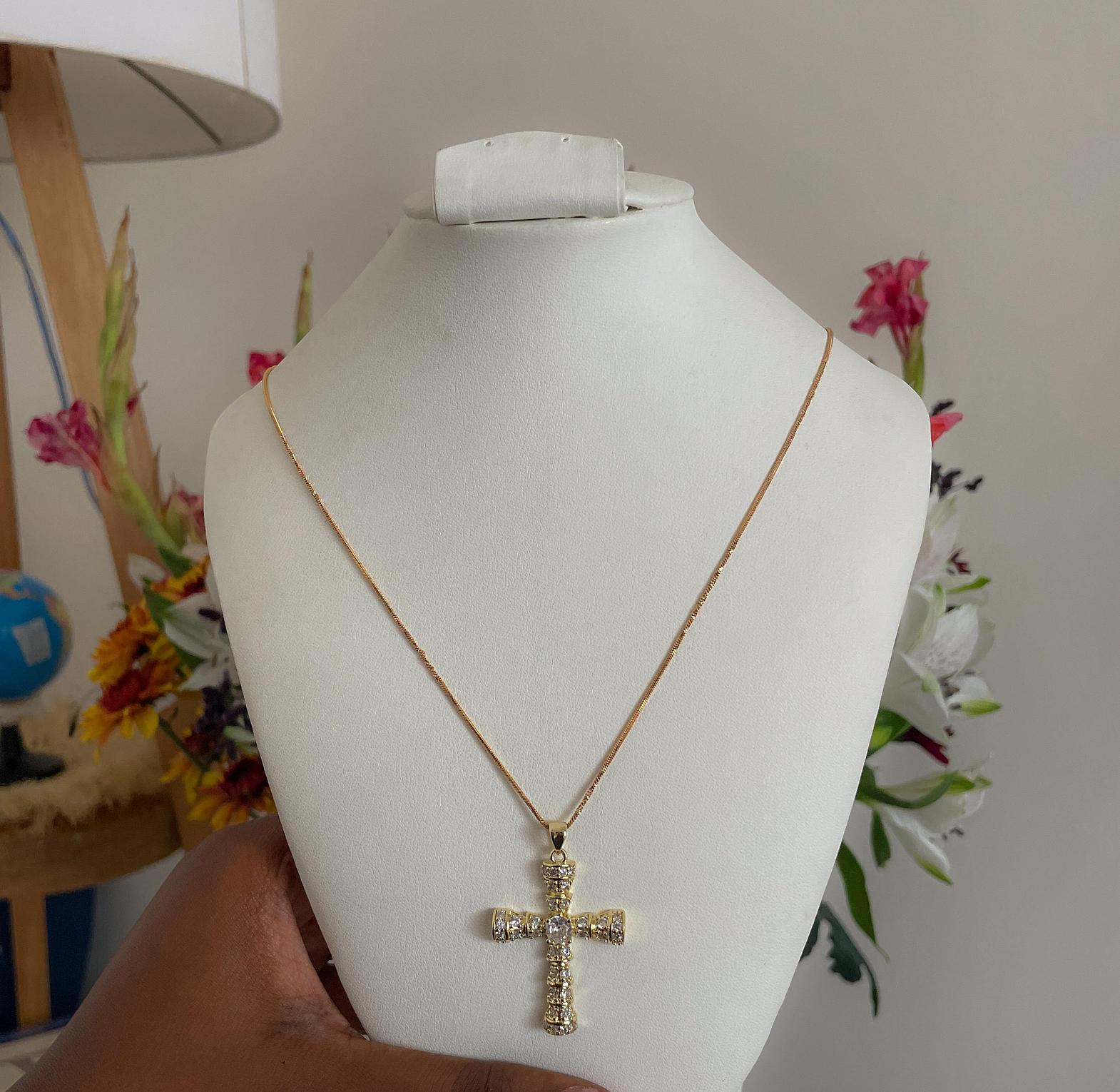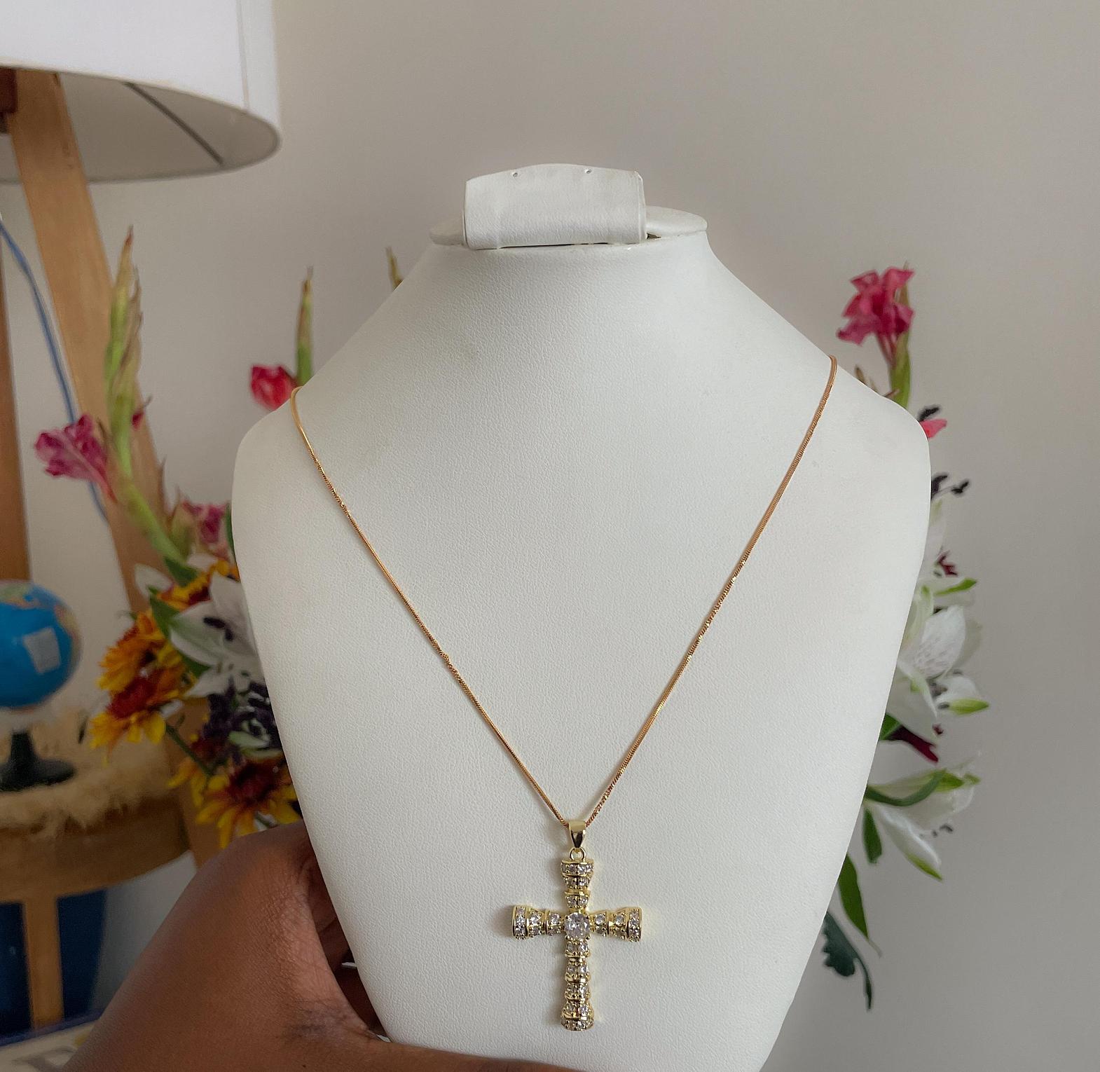 Embrace profound elegance with the Golden Tiered Cross Necklace, a majestic symbol of faith and enduring brilliance. Its multi-dimensional design offers a rich and captivating presence.