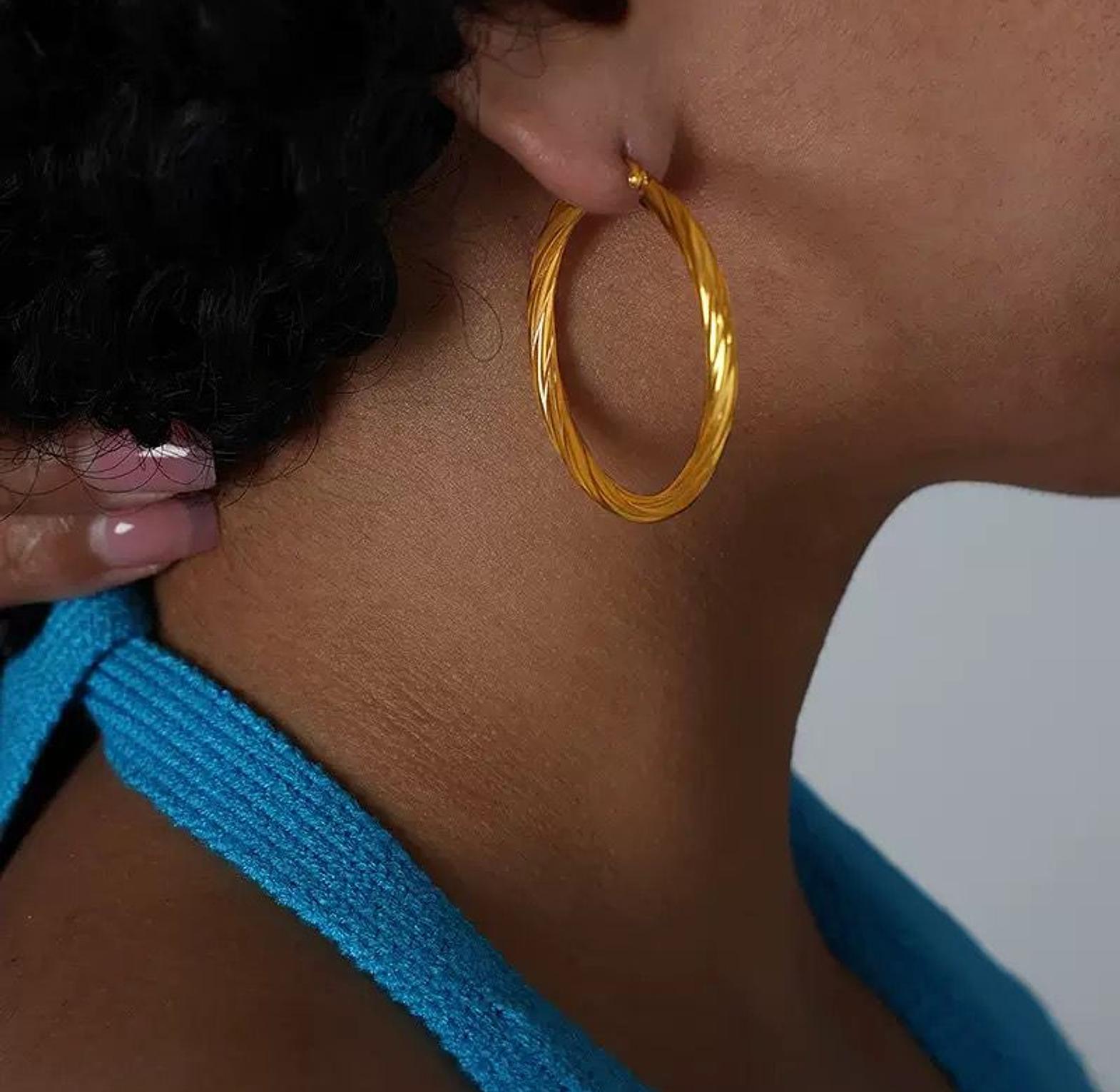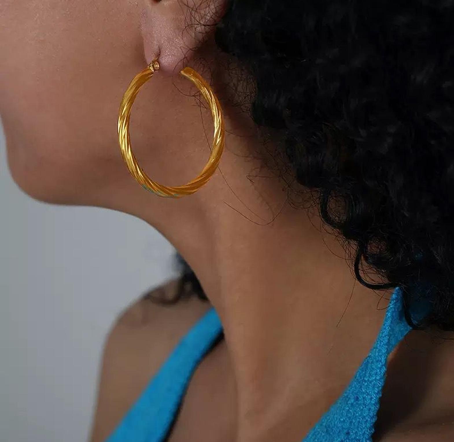These classic hoops get a modern update with a stunning ribbed texture. The elegant twist catches the light, adding a subtle yet sophisticated sparkle to your style.