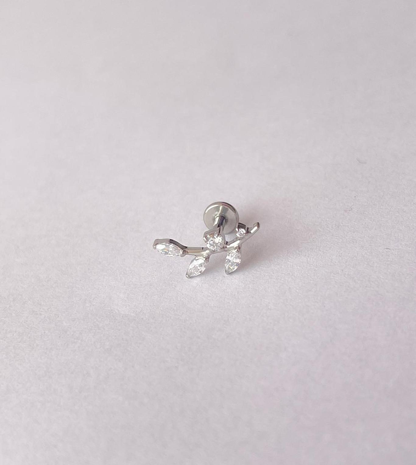 Elegant leaf-shaped studs crafted for multiple piercings. A versatile accessory with a delicate, nature-inspired design.