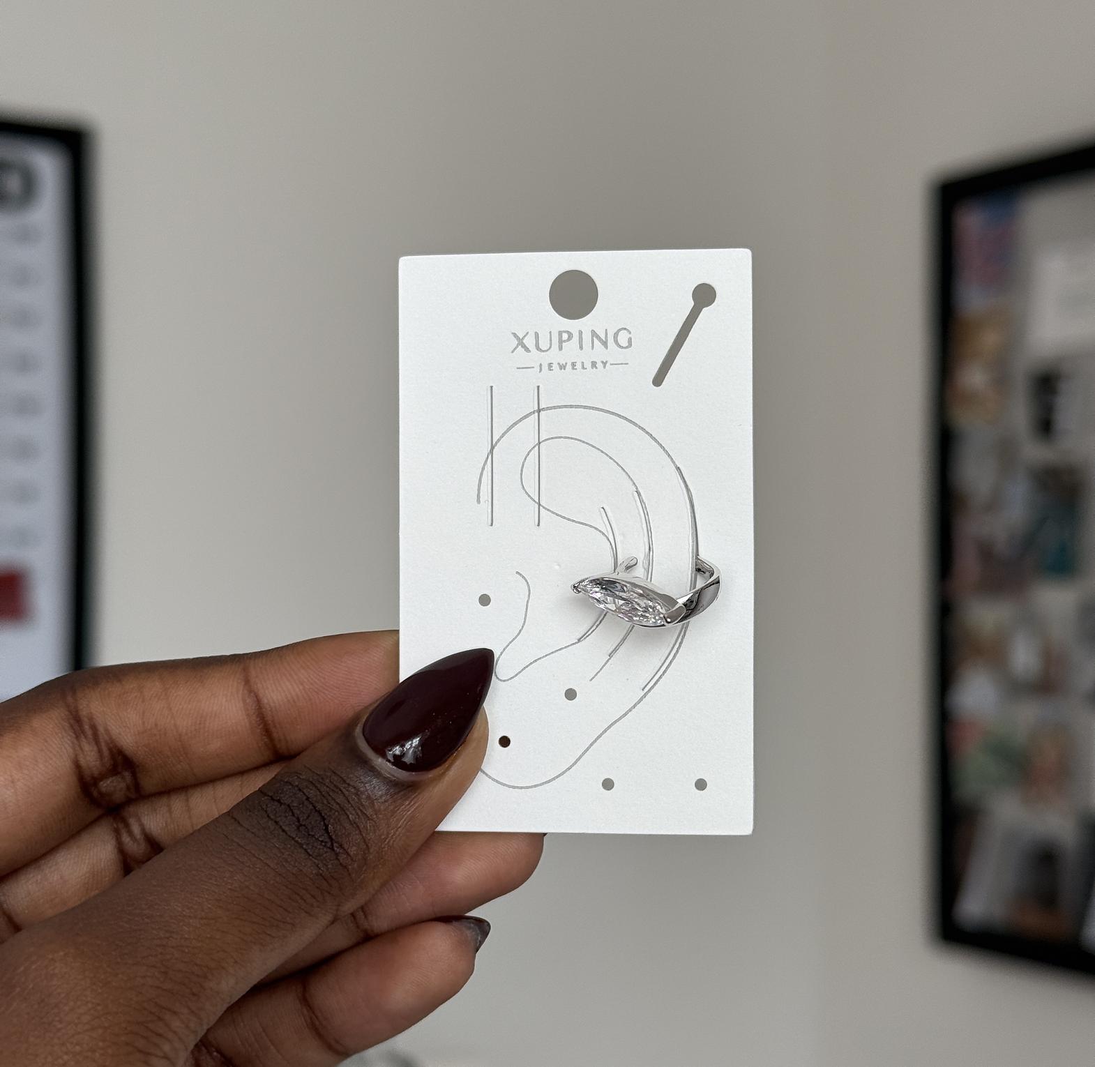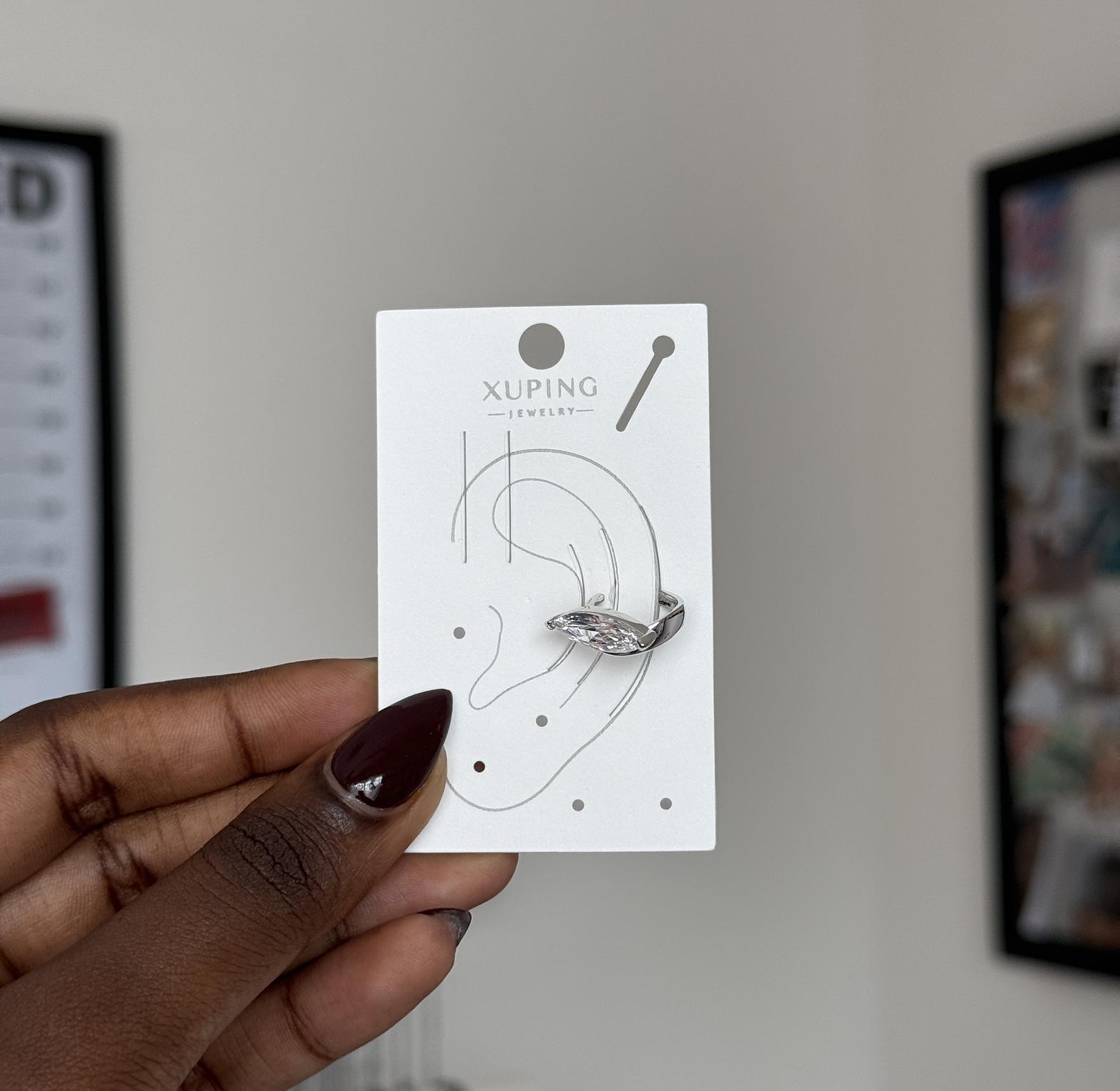 Sleek and eye-catching, this marquise-cut ear cuff adds instant sparkle without the need for a piercing. Designed to hug the ear comfortably, it’s the perfect statement for modern, effortless style.