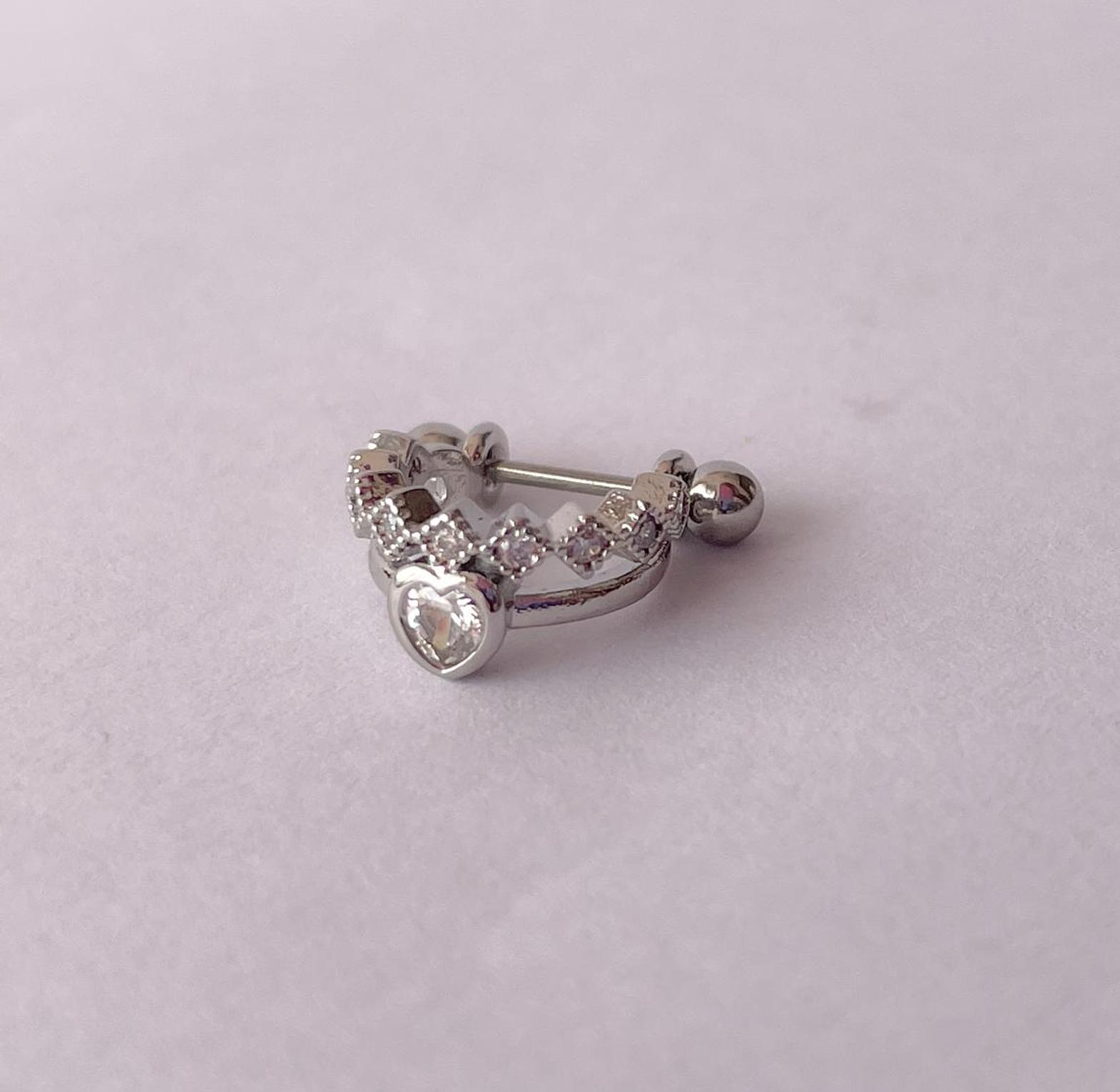 Express your style with the elegant Regal Heart Charm Helix, featuring a dazzling heart-shaped cubic zirconia and a shimmering pavé-set band. Crafted from hypoallergenic and non-tarnish stainless steel, this piece offers lasting beauty and comfort.