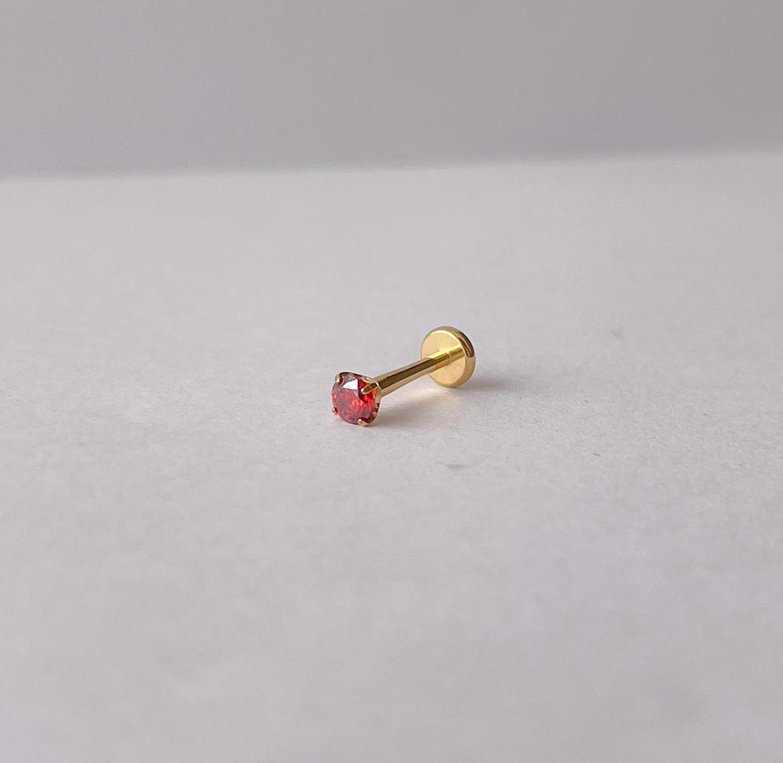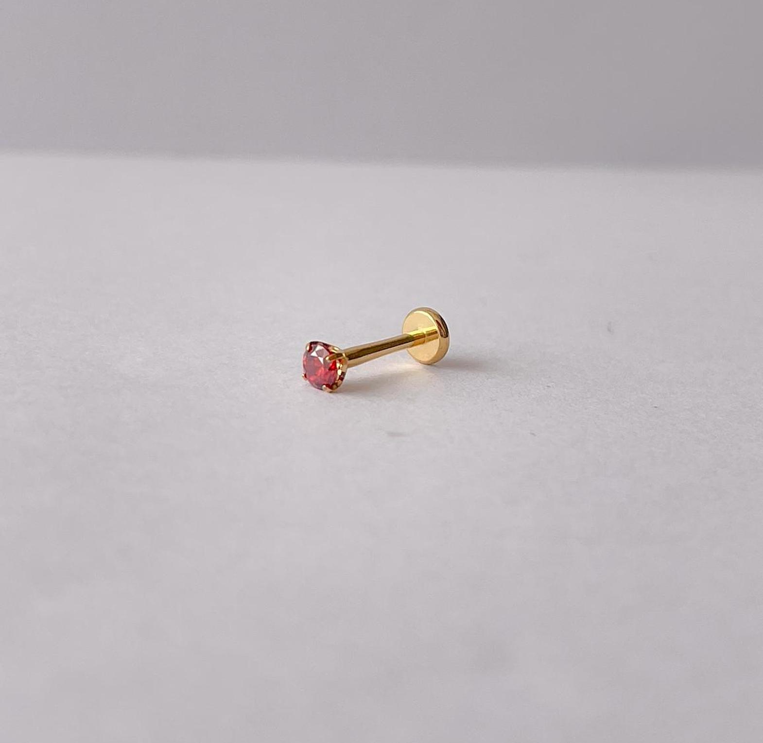 Dazzling ruby-colored studs set in gold-plated stainless steel. Hypoallergenic and suitable for a wide range of ear and facial piercings.