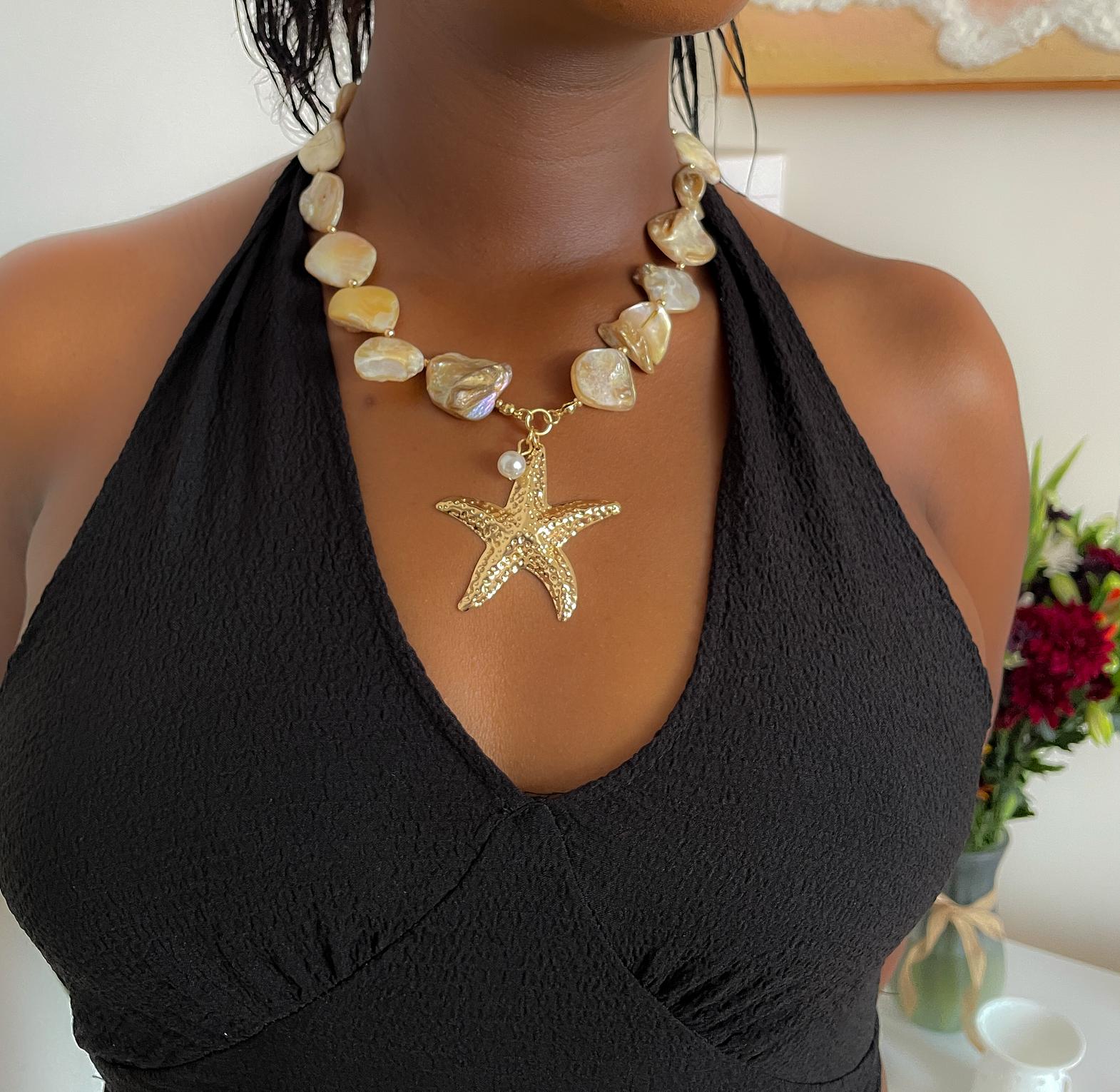 Sea shell necklace, starfish pendant necklace, summer necklace, boho bridal jewelry, shells necklace, holidays jewelry, necklace woman