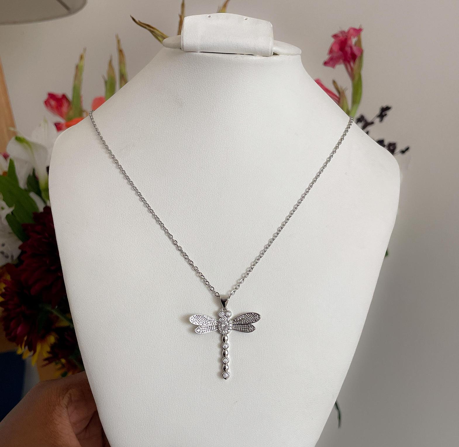 Capture the ethereal beauty of nature with the Sterling Dragonfly Serenity Necklace, a symbol of transformation and elegance. Its intricate design and brilliant shimmer offer a captivating addition to your jewelry collection.