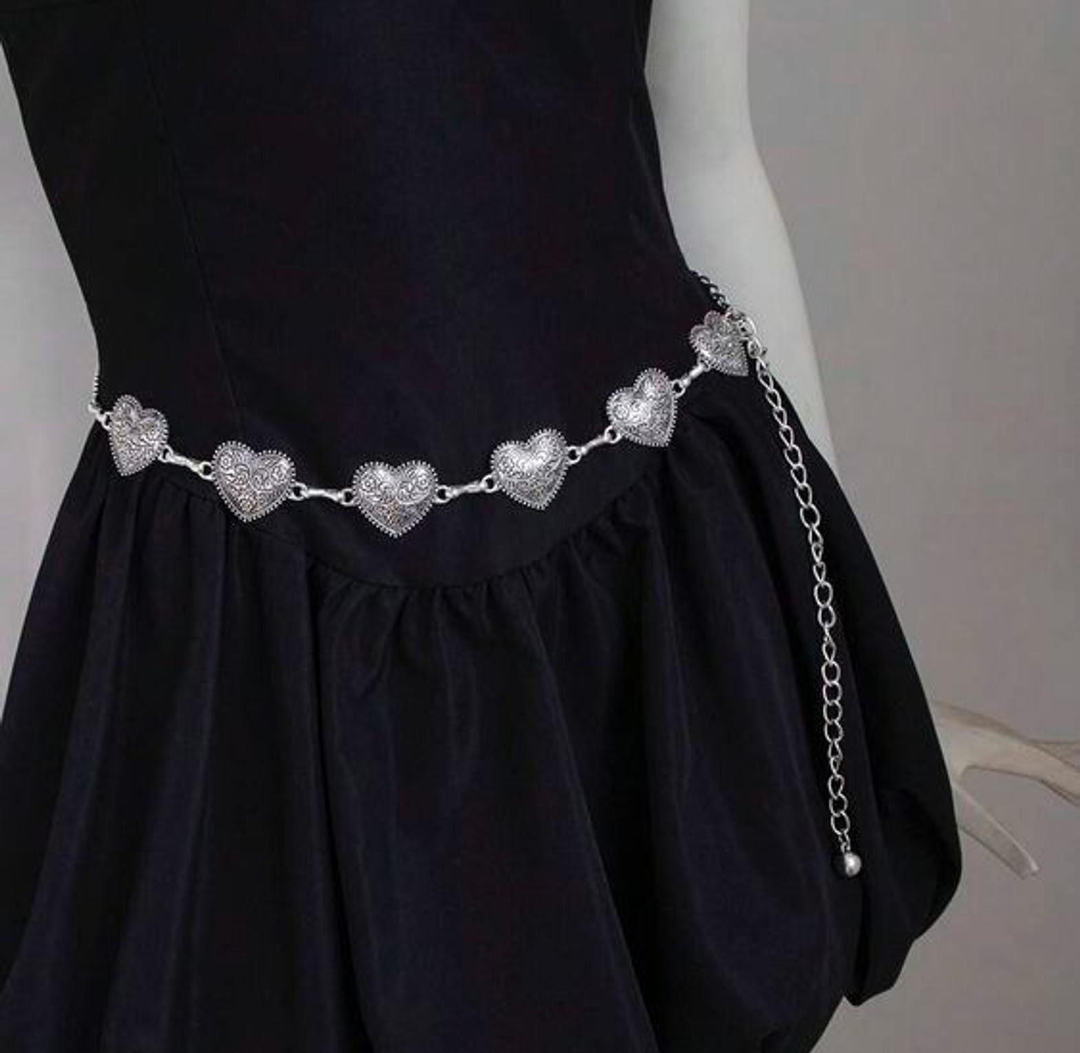 This stunning textured diamond chain belt elevates any outfit with its exquisite series of love-shaped medallions, each featuring intricate textured surfaces that create captivating light reflection and dimensional beauty. The premium silver-tone construction showcases detailed craftsmanship in every link, with raised geometric patterns that add tactile interest and visual depth to the overall design. Each love-shaped element is meticulously crafted with fine textural details that catch and reflect light beautifully, creating a subtle shimmer effect that enhances the belt's luxurious appeal. The adjustable chain construction with decorative hanging detail ensures versatile styling options, allowing wearers to customize the fit for various waist sizes and outfit styles. This sophisticated accessory seamlessly transitions from day to night, complementing everything from flowing bohemian dresses to structured blazers or adding glamorous accent to casual streetwear. The durable metallic finish maintains its lustrous appearance through regular wear, making it a reliable choice for fashion enthusiasts who appreciate quality accessories. Perfect for special occasions, evening events, or adding elevated detail to everyday outfits, this diamond chain belt appeals to those who seek refined statement pieces that balance elegance with contemporary style. The secure clasp system ensures comfortable all-day wear while the timeless geometric design makes it a versatile addition to any jewelry collection.