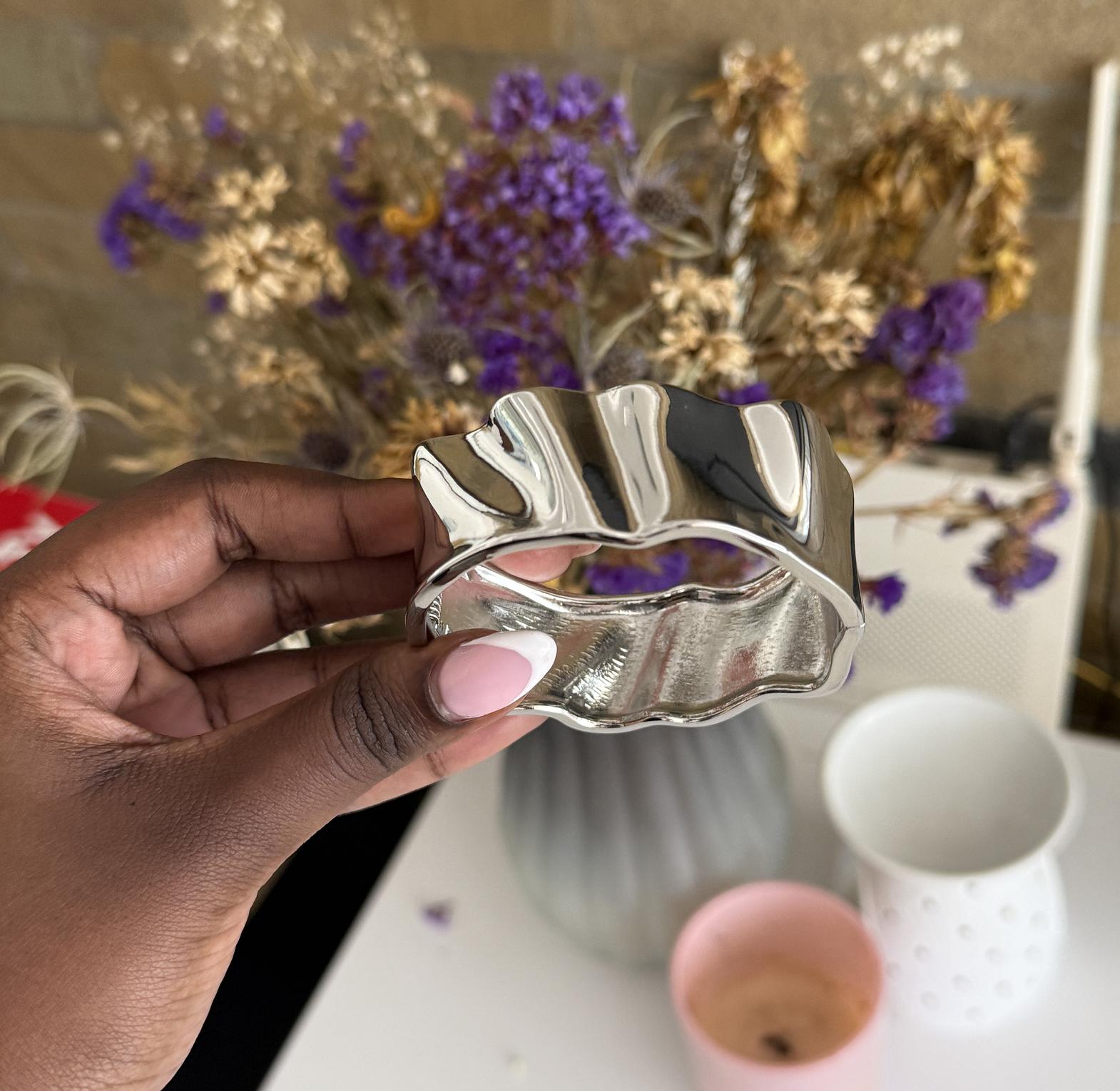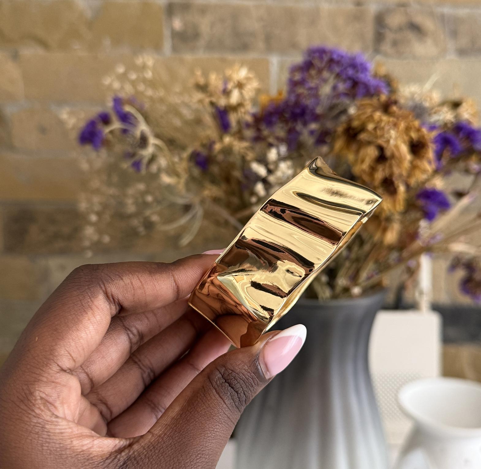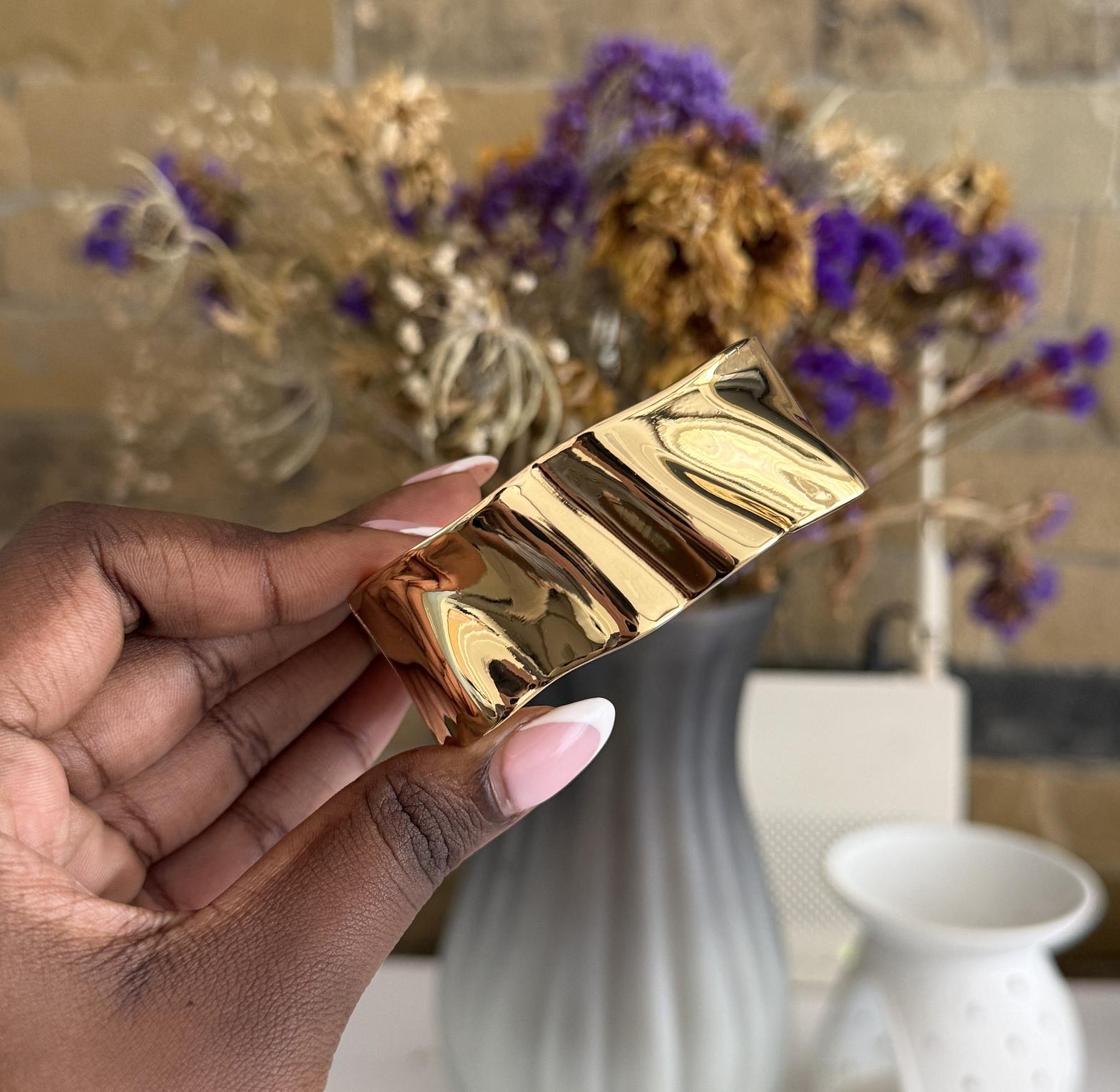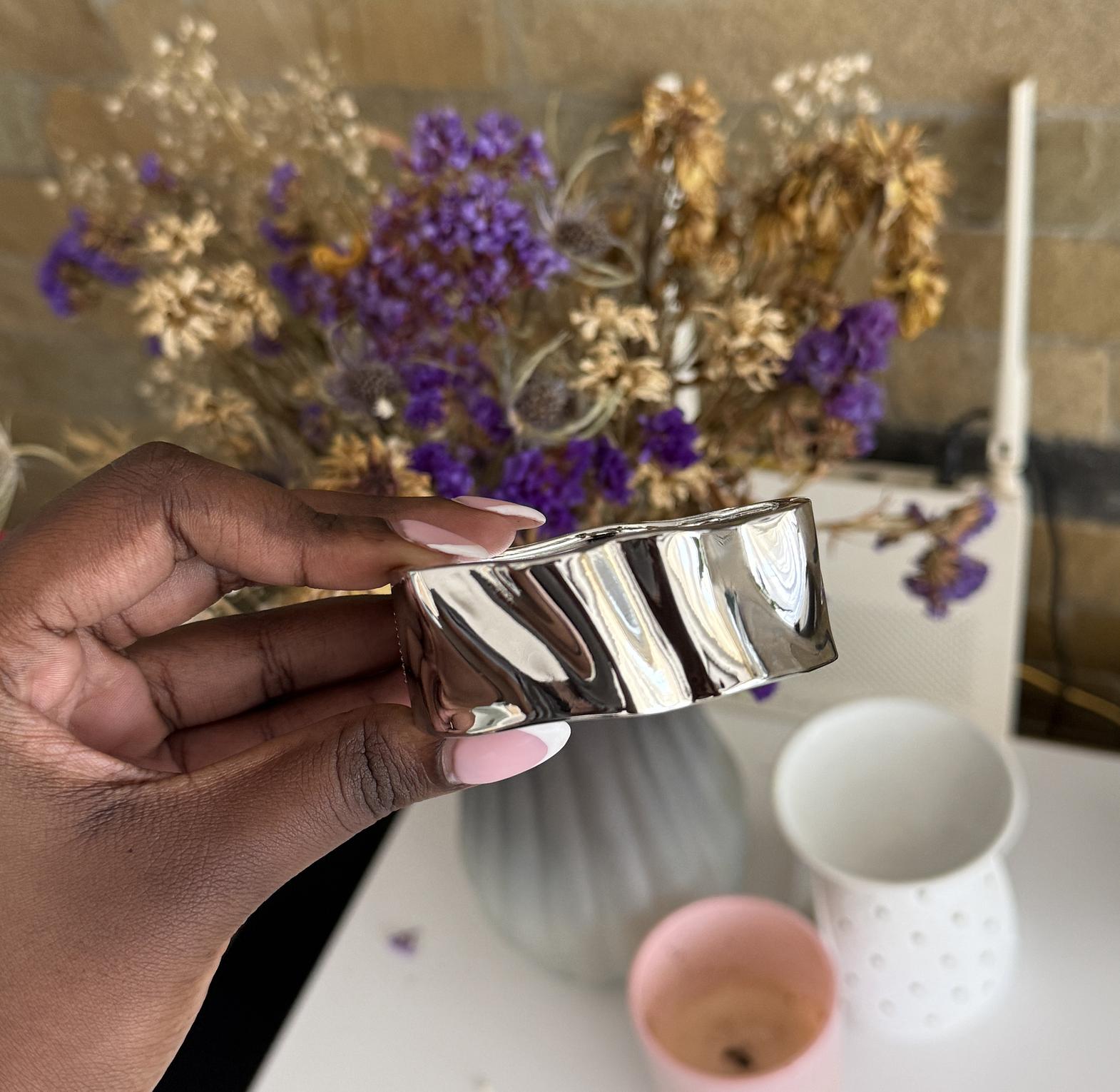 Minimalist bangle with soft light texture.