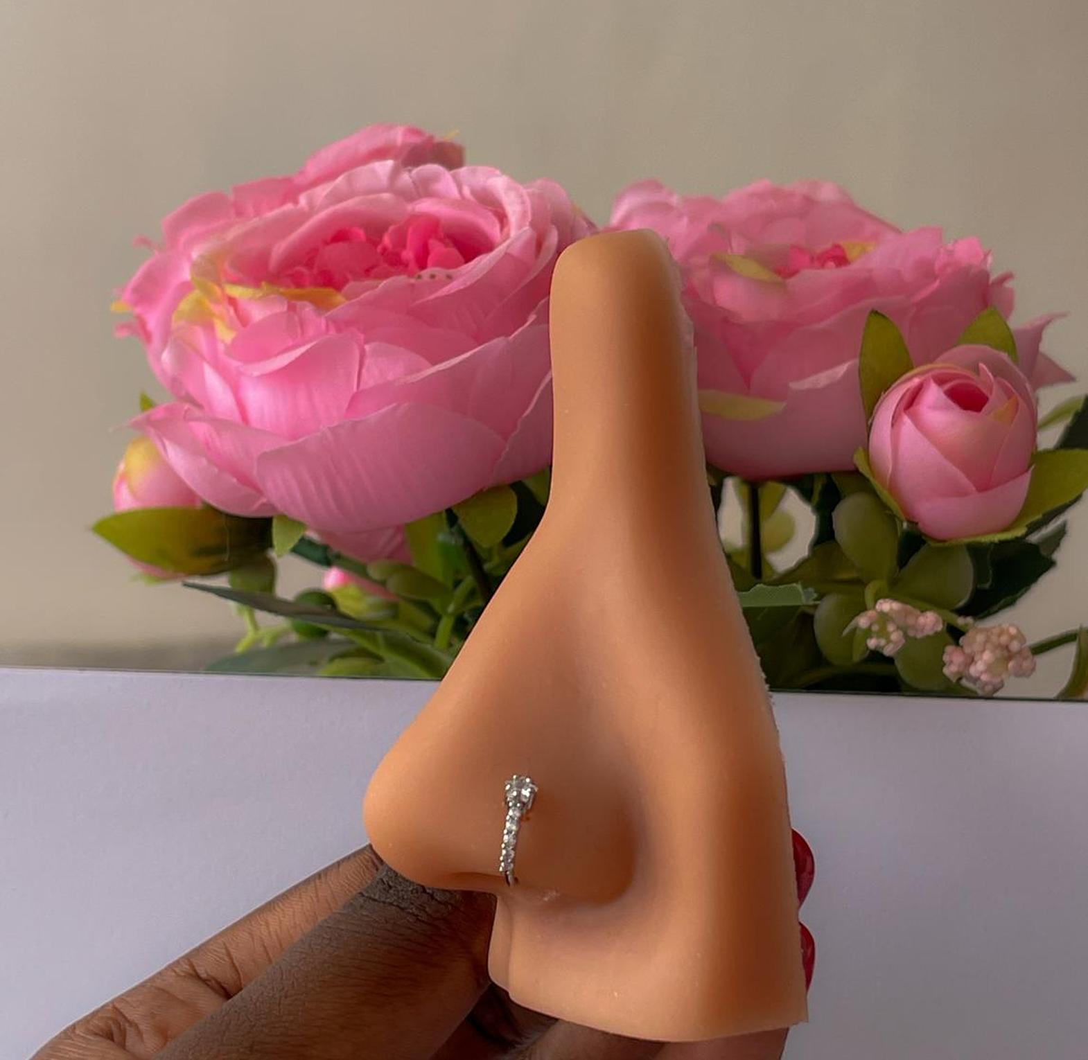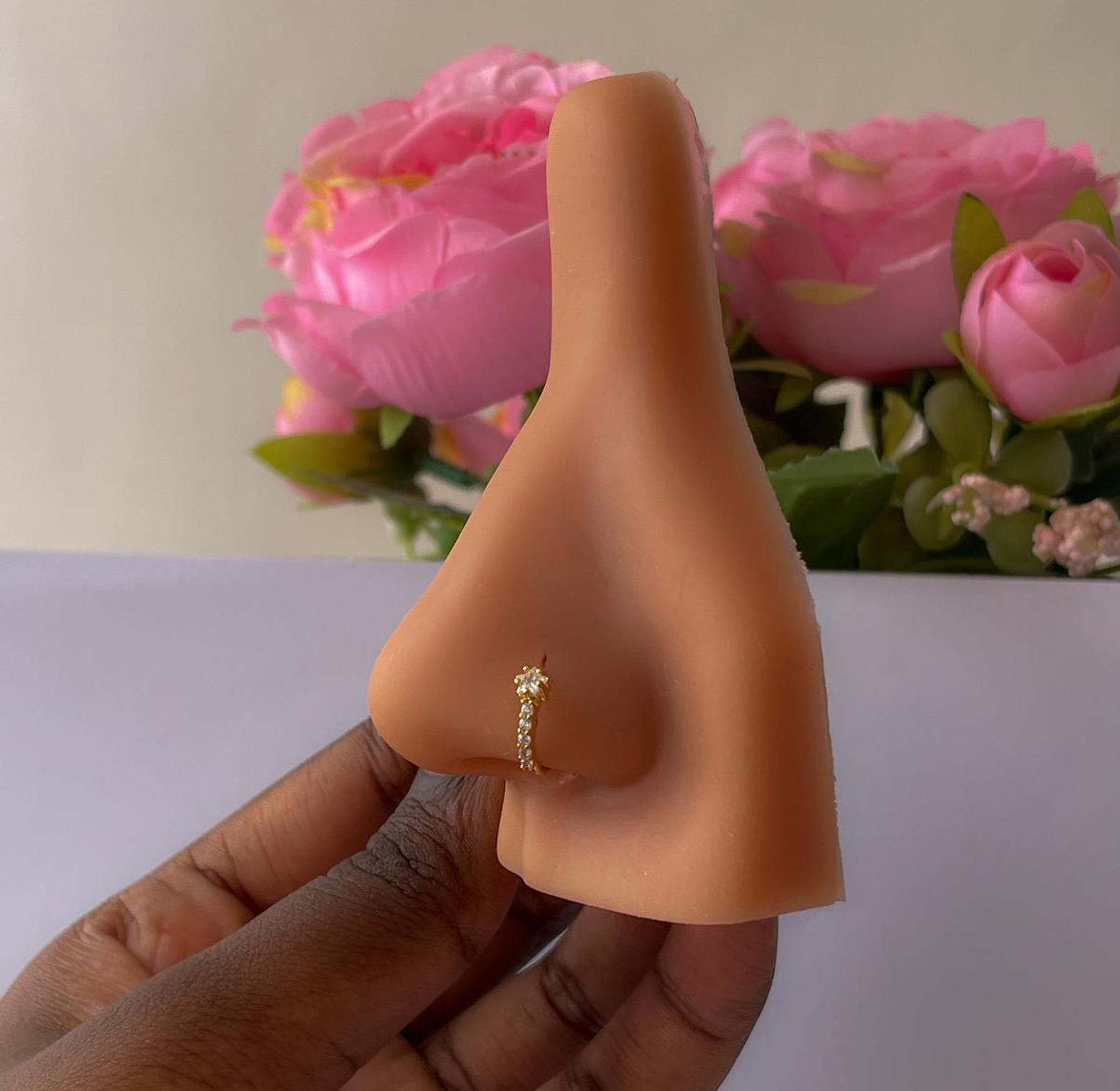 Enhance your look with this elegant 8mm stainless steel nose hoop, featuring a row of dazzling cubic zirconia. Hypoallergenic and non-tarnish for lasting sparkle.