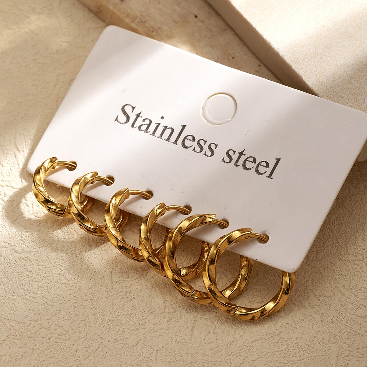 Elevate your everyday style with these simple yet elegant spiral infinity hoop earrings, crafted from 304 stainless steel with 18K gold vacuum electroplating.