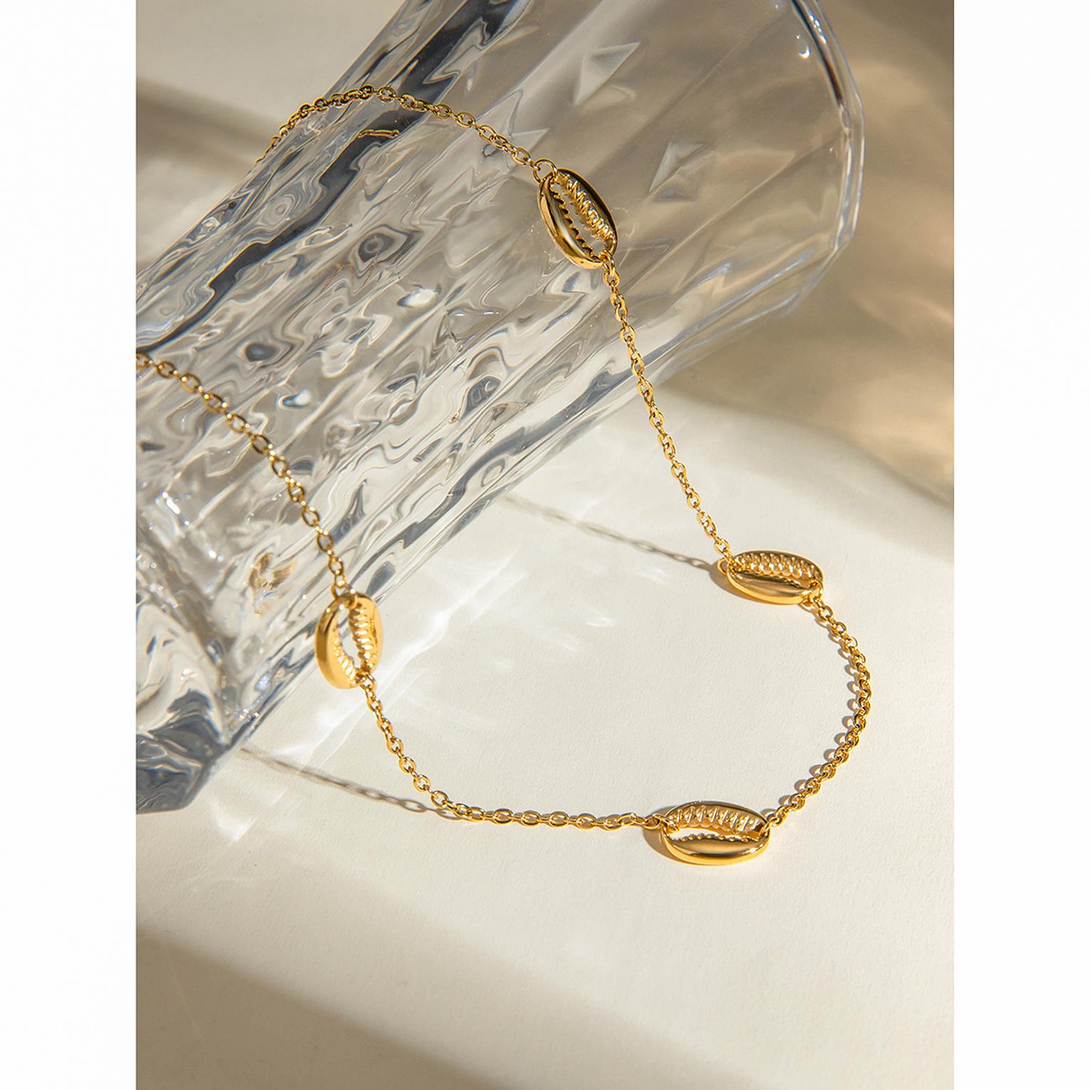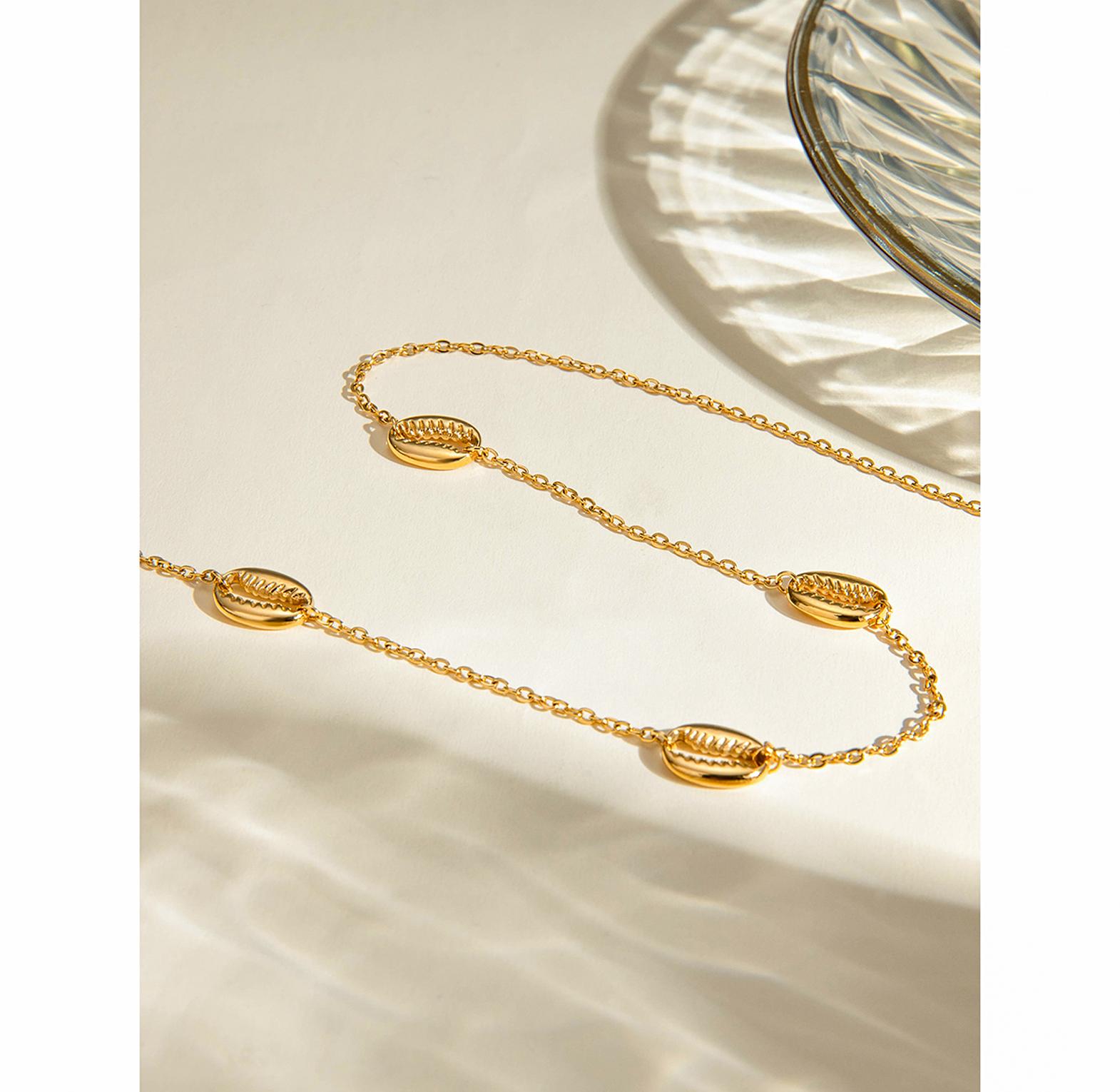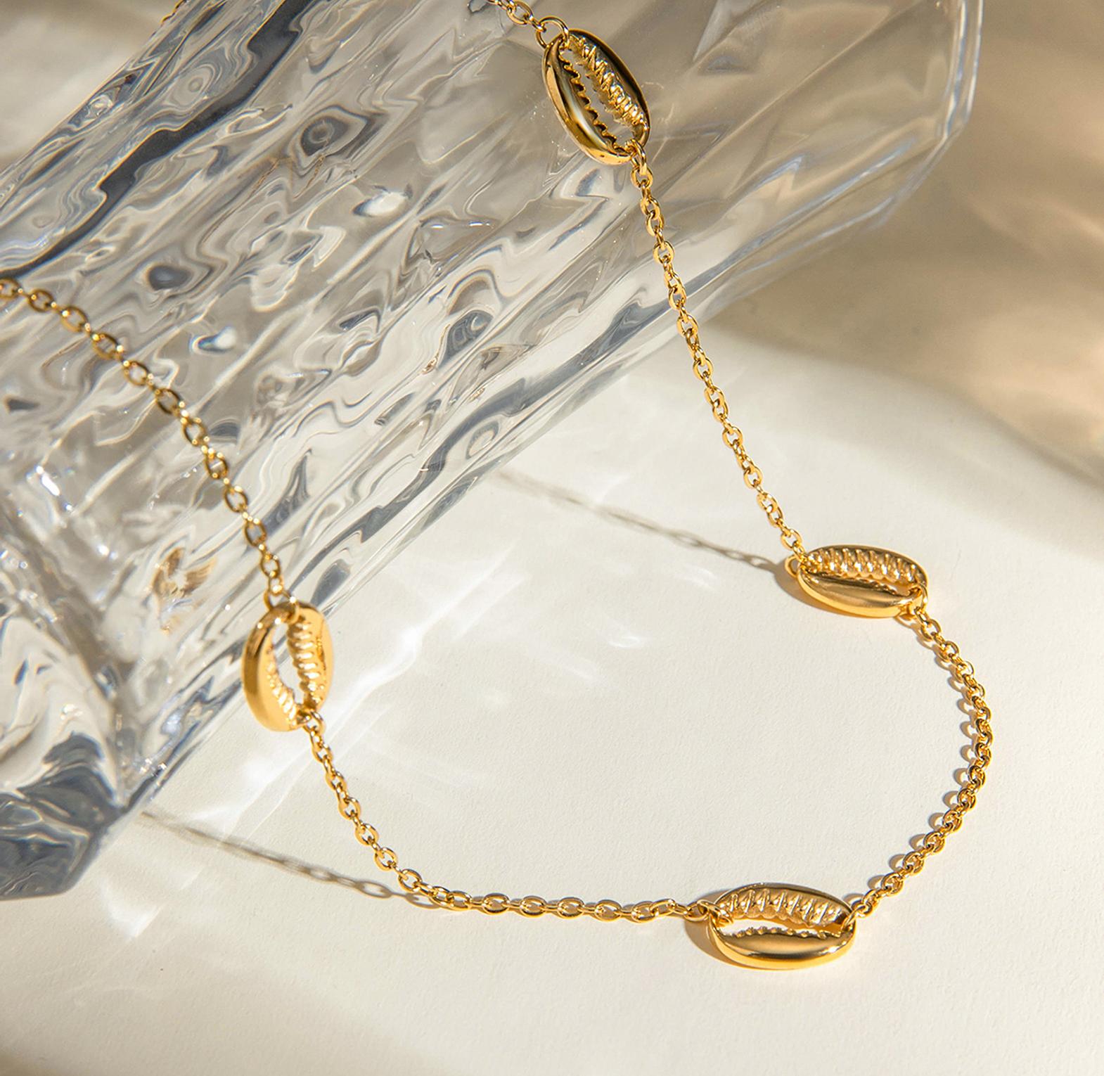 A stylish necklace featuring natural cowrie shells for a beachy, bohemian vibe.