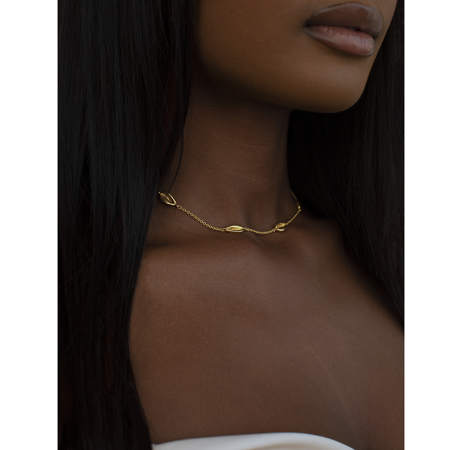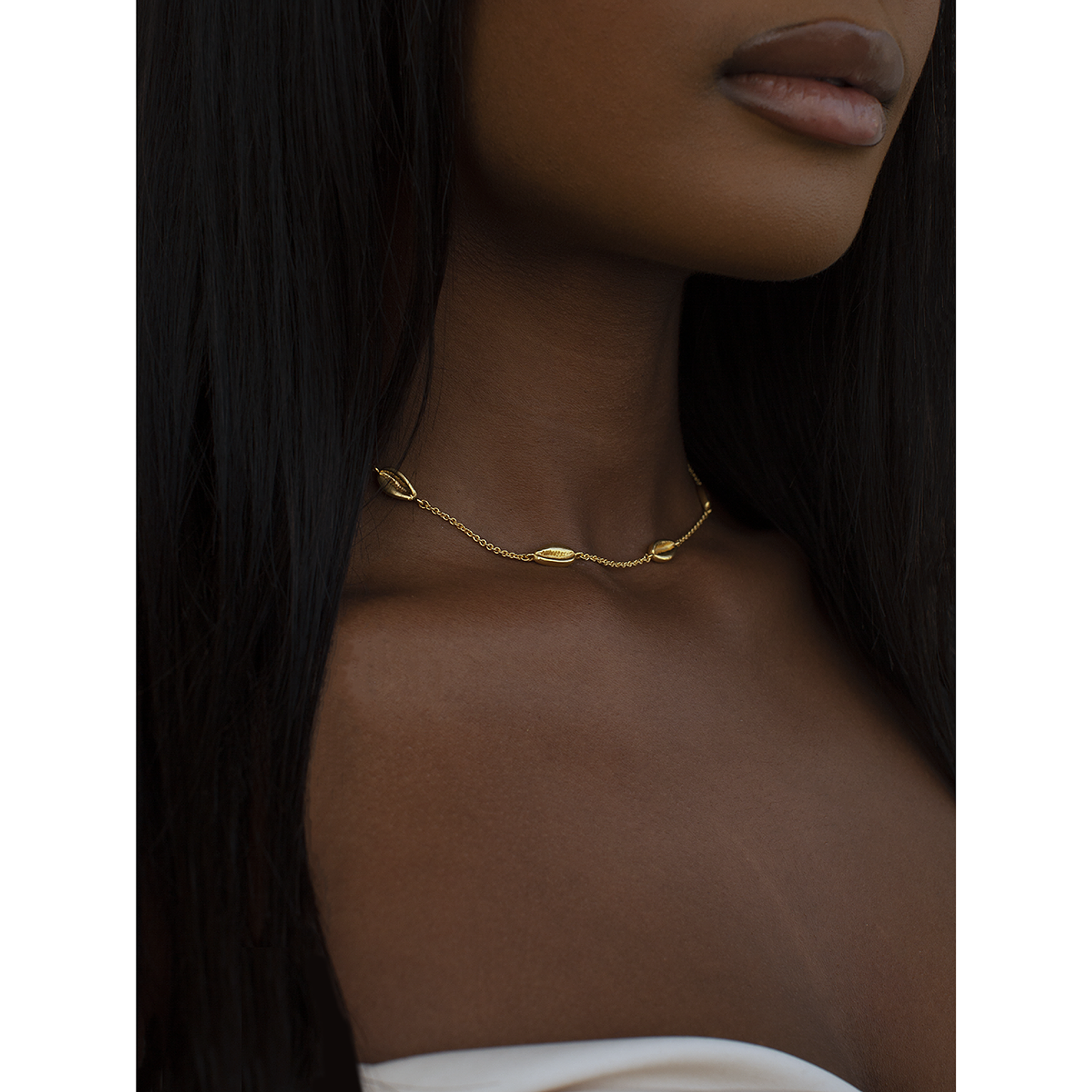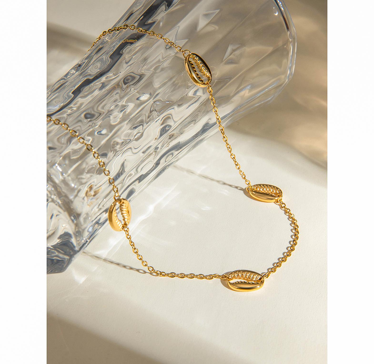 A stylish necklace featuring natural cowrie shells for a beachy, bohemian vibe.