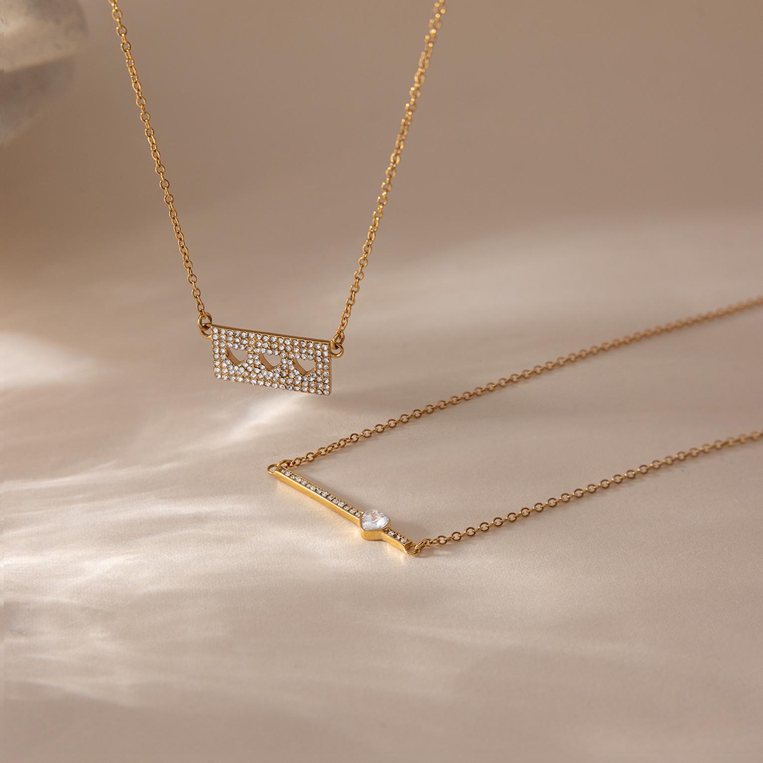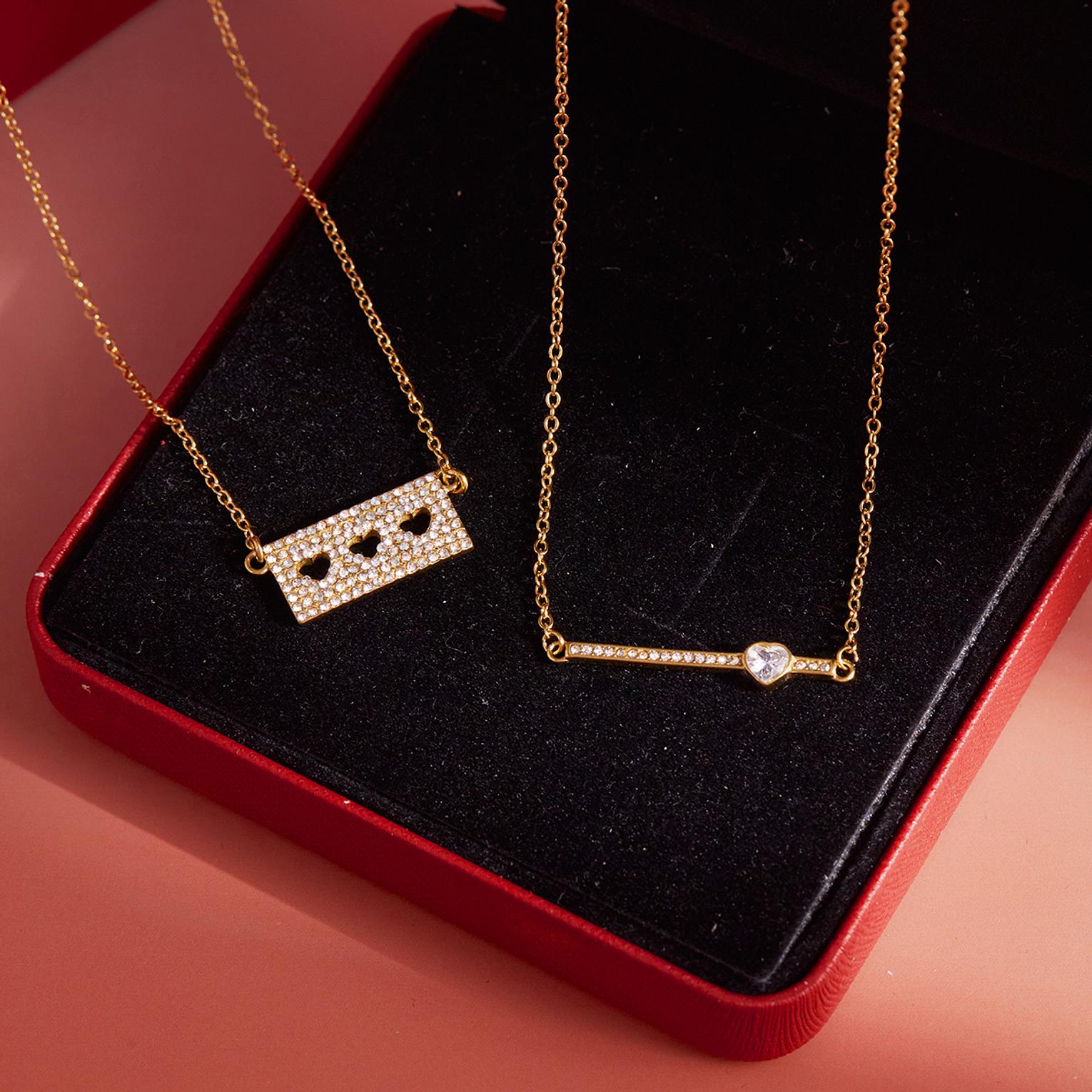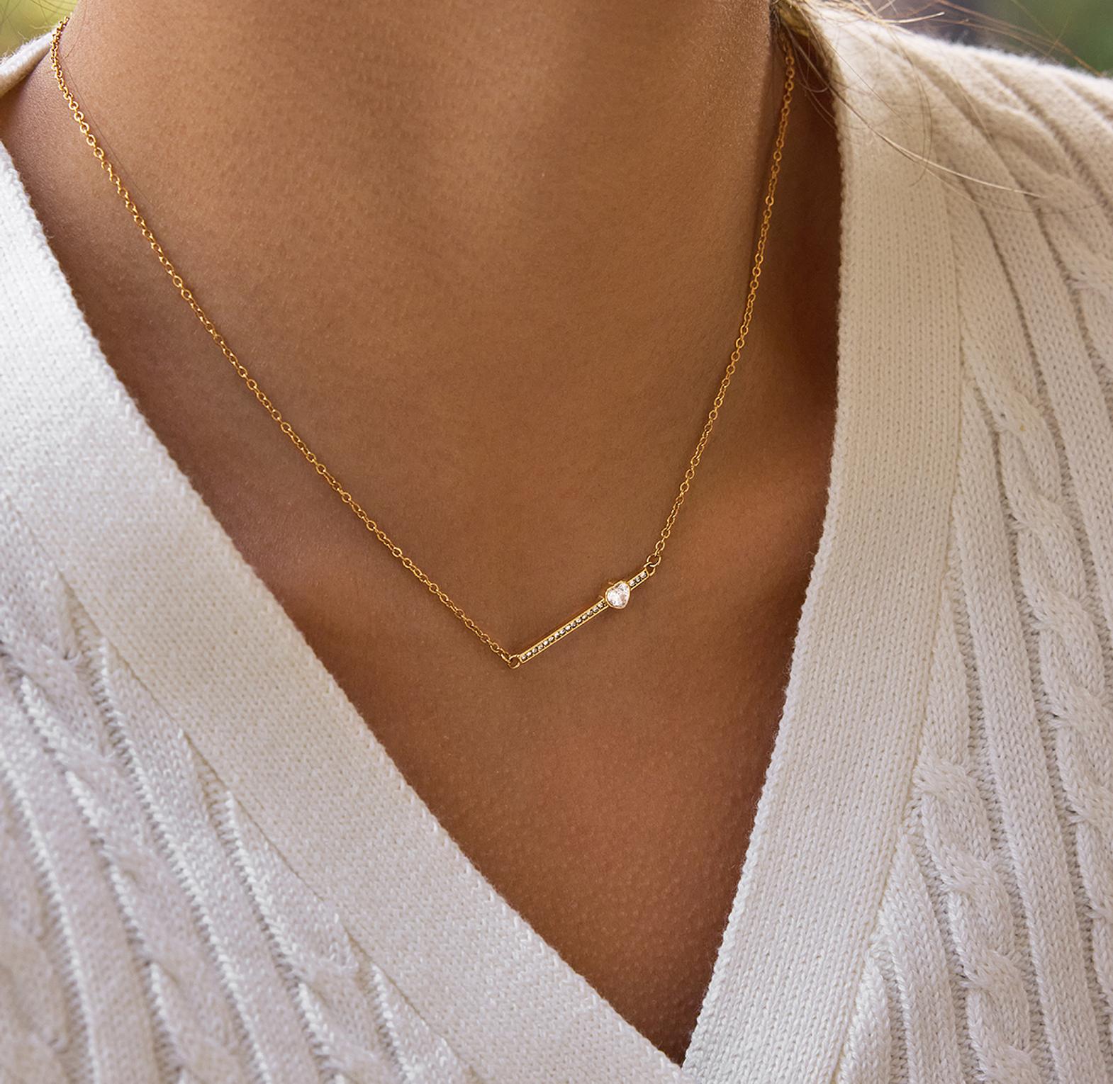 A delicate gold-toned necklace featuring a sleek bar and a charming heart for subtle, romantic elegance.