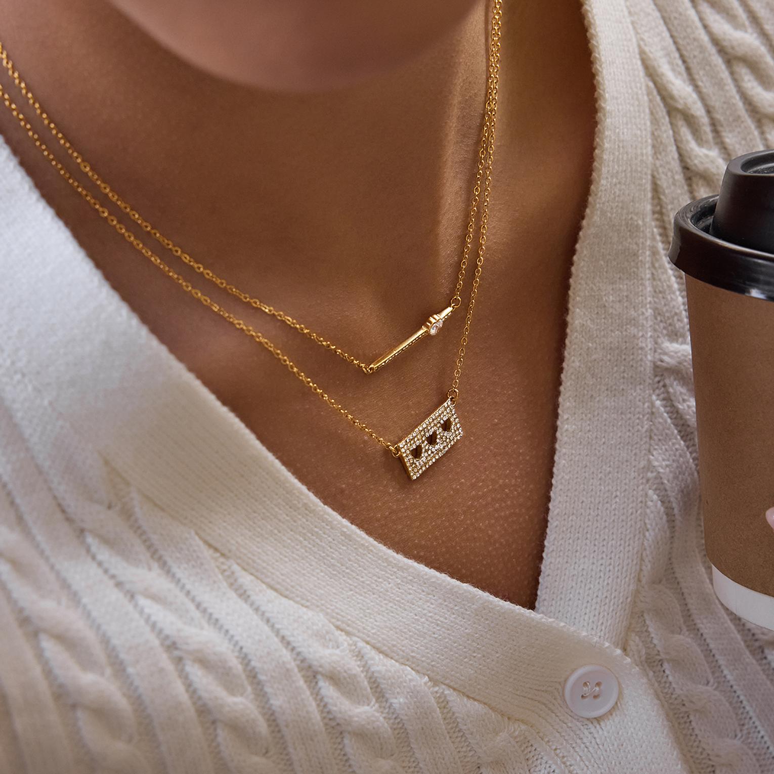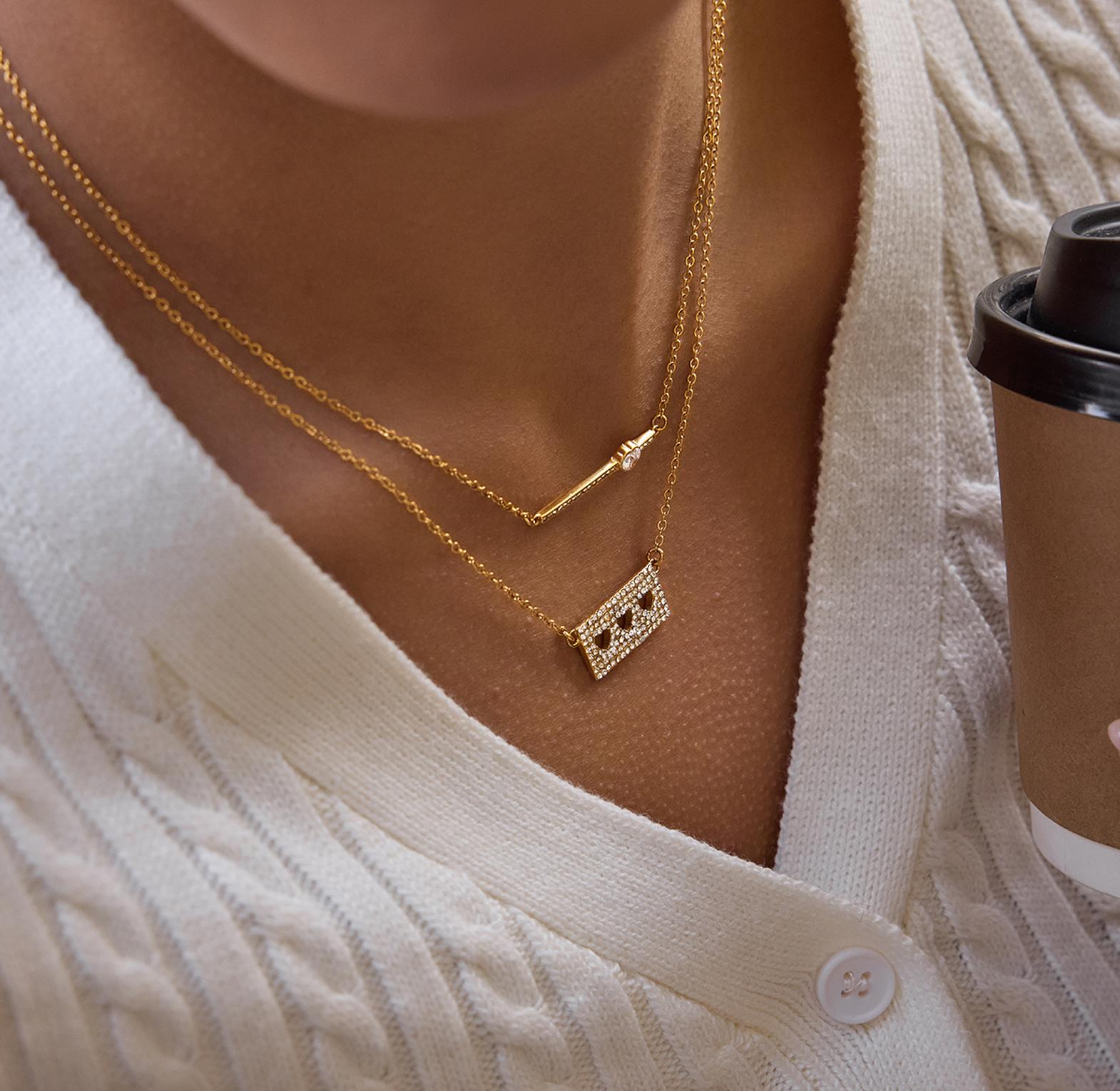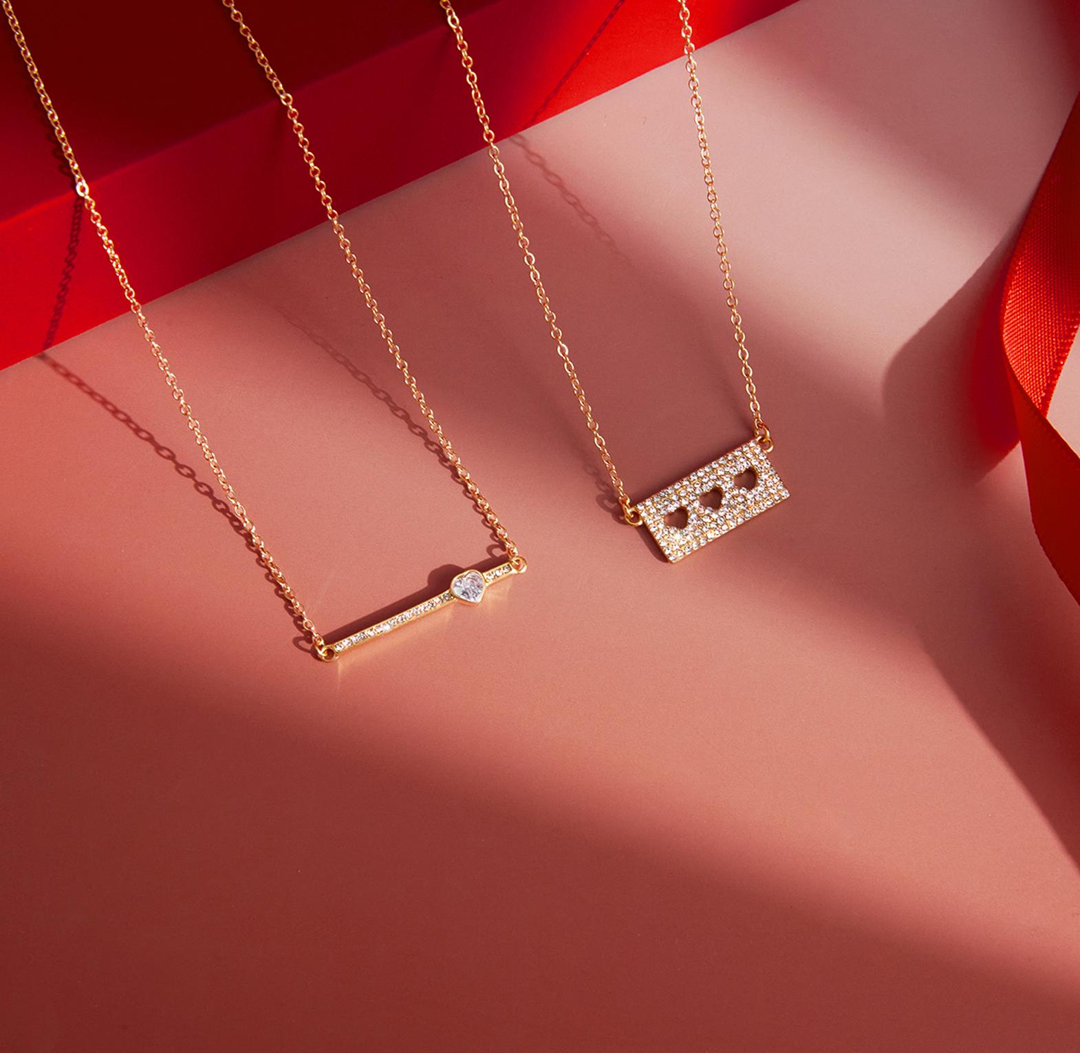 A delicate gold-toned necklace featuring a sleek bar and a charming heart for subtle, romantic elegance.