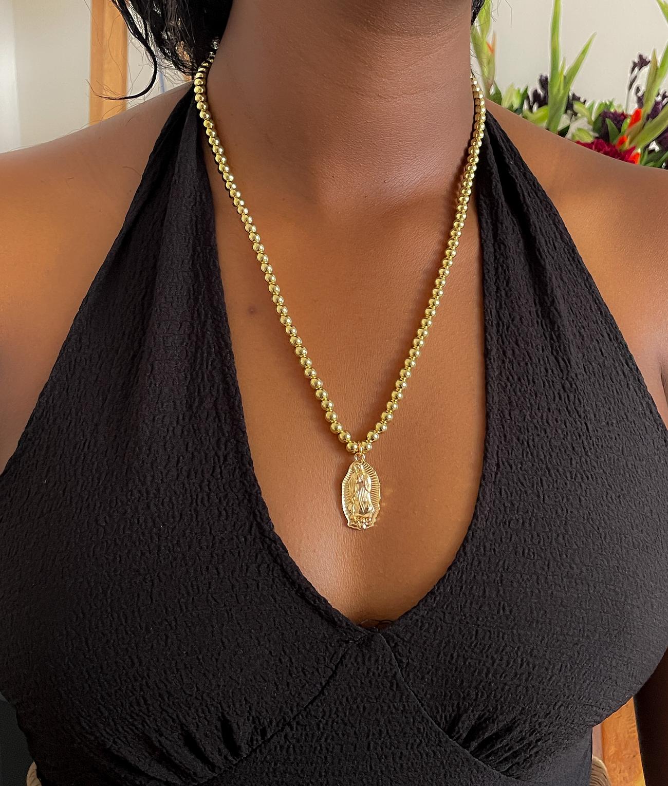 Channel divine energy and warmth with our Gold Guadalupe Pendant Necklace. Featuring polished gold beads and a radiant Virgin of Guadalupe medallion, this eye-catching necklace celebrates tradition while offering a modern, stylish twist. Ideal for everyday wear, its classic design brings a touch of sacred charm to any look.