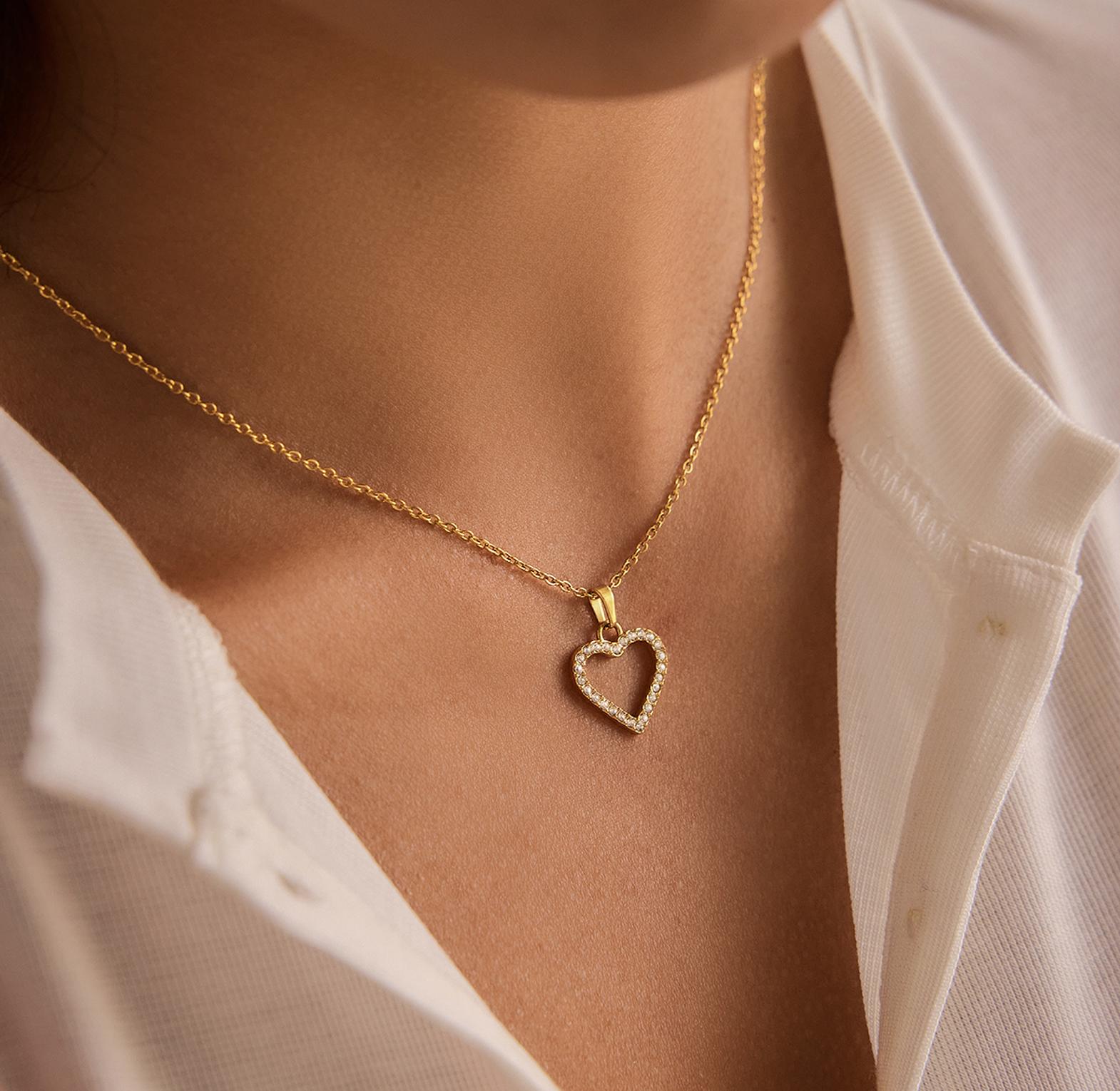 A delicate necklace featuring a minimalist open heart pendant, radiating modern elegance and subtle charm.