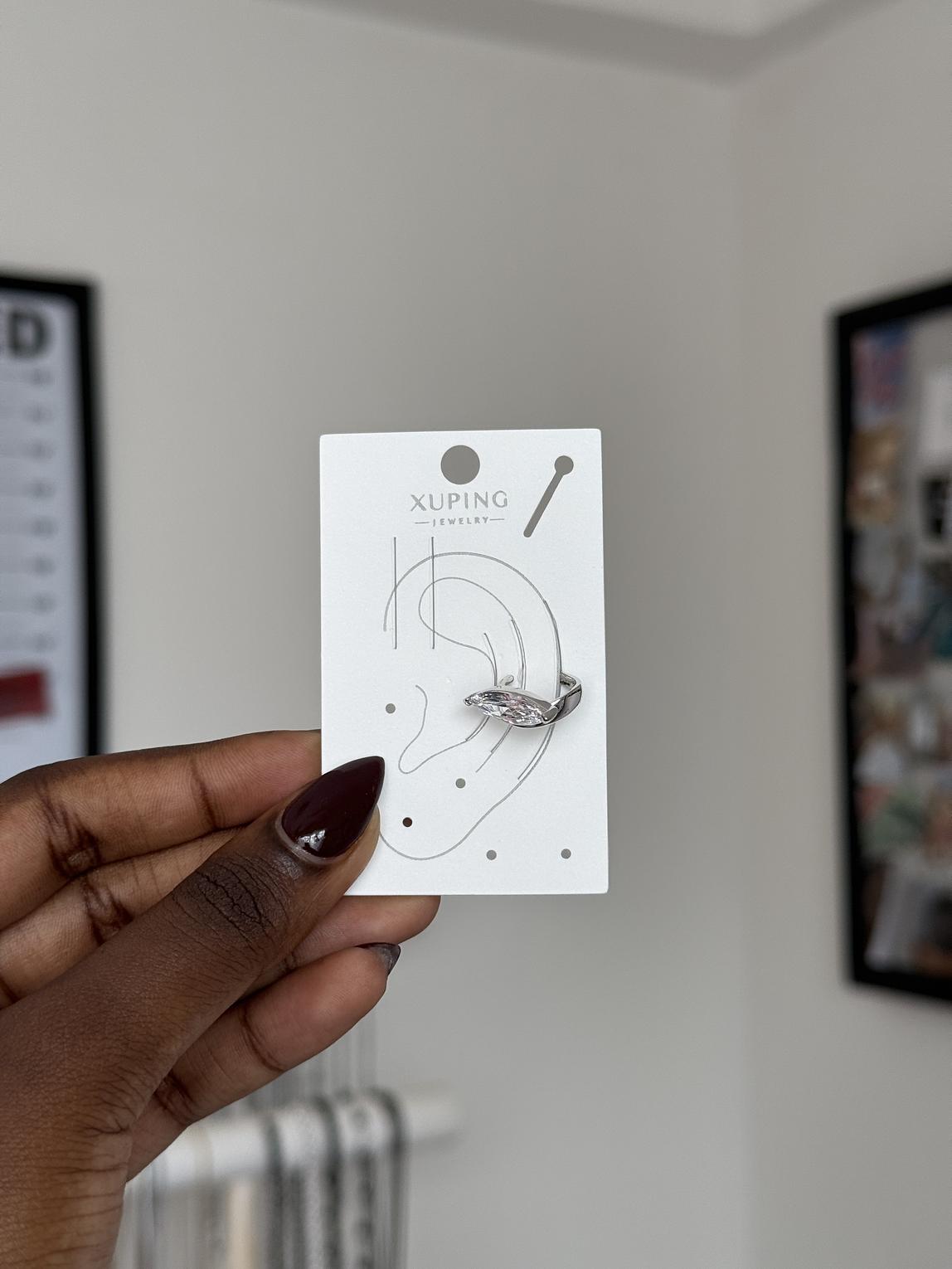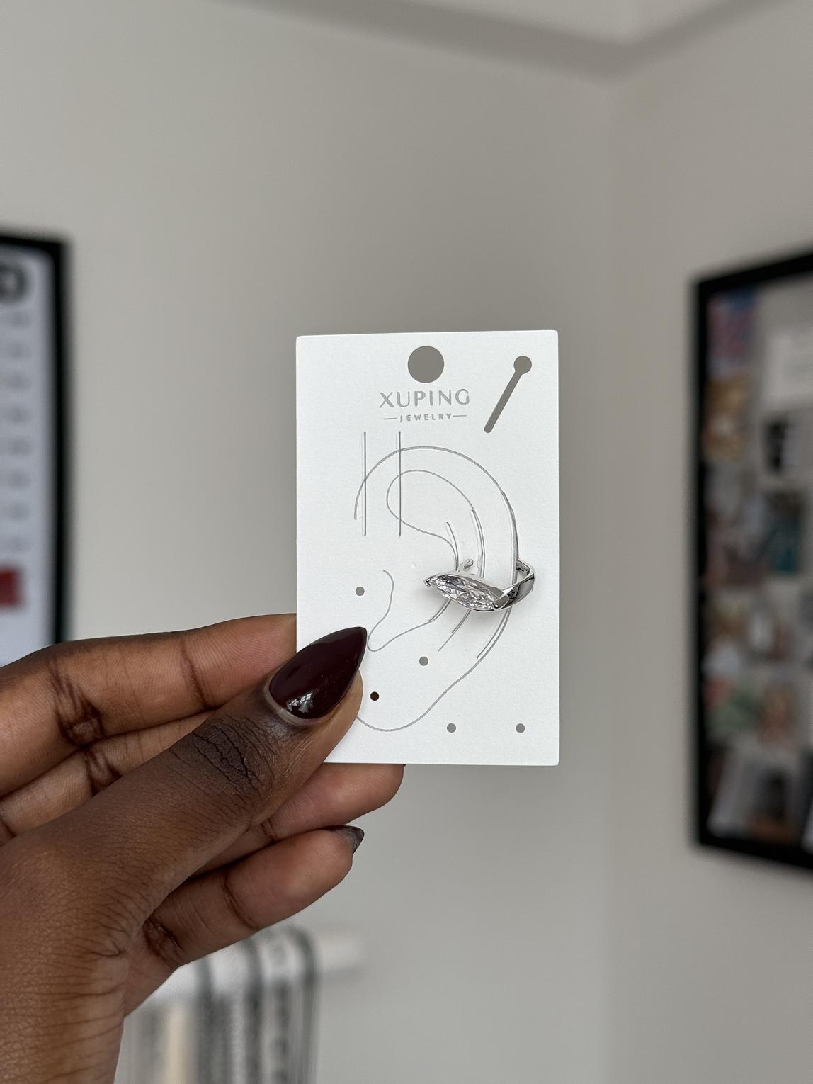 Sleek and eye-catching, this marquise-cut ear cuff adds instant sparkle without the need for a piercing. Designed to hug the ear comfortably, it’s the perfect statement for modern, effortless style.