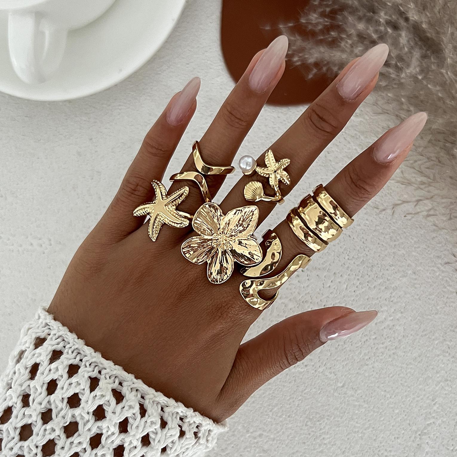 A bold and playful mix of chunky floral rings — perfect for adding a soft feminine pop to your everyday look.