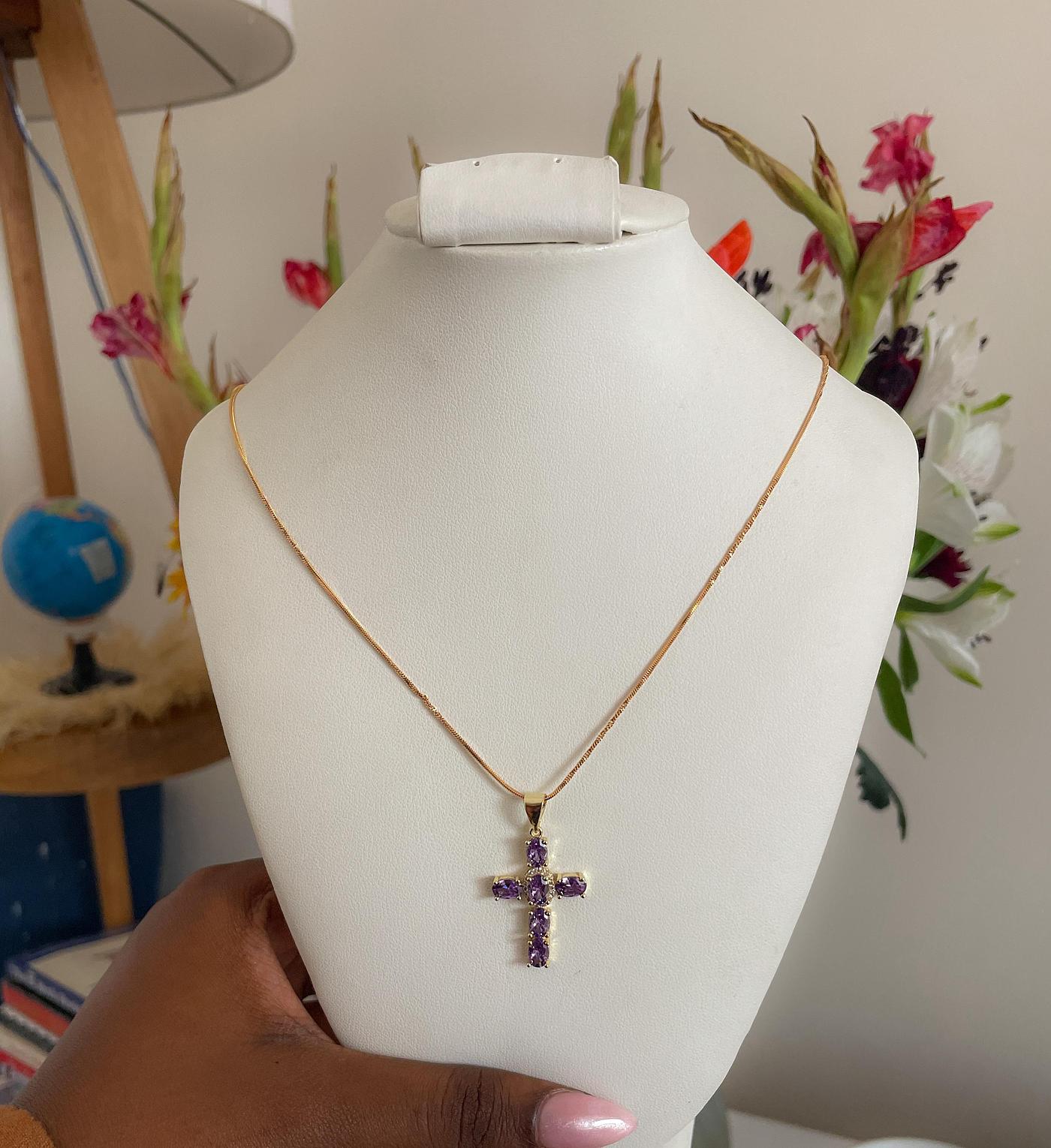 Embrace spiritual grace with a touch of soft color in the Rose Quartz Radiance Cross Necklace. This beautifully crafted and meaningful accessory offers serene elegance for any occasion.