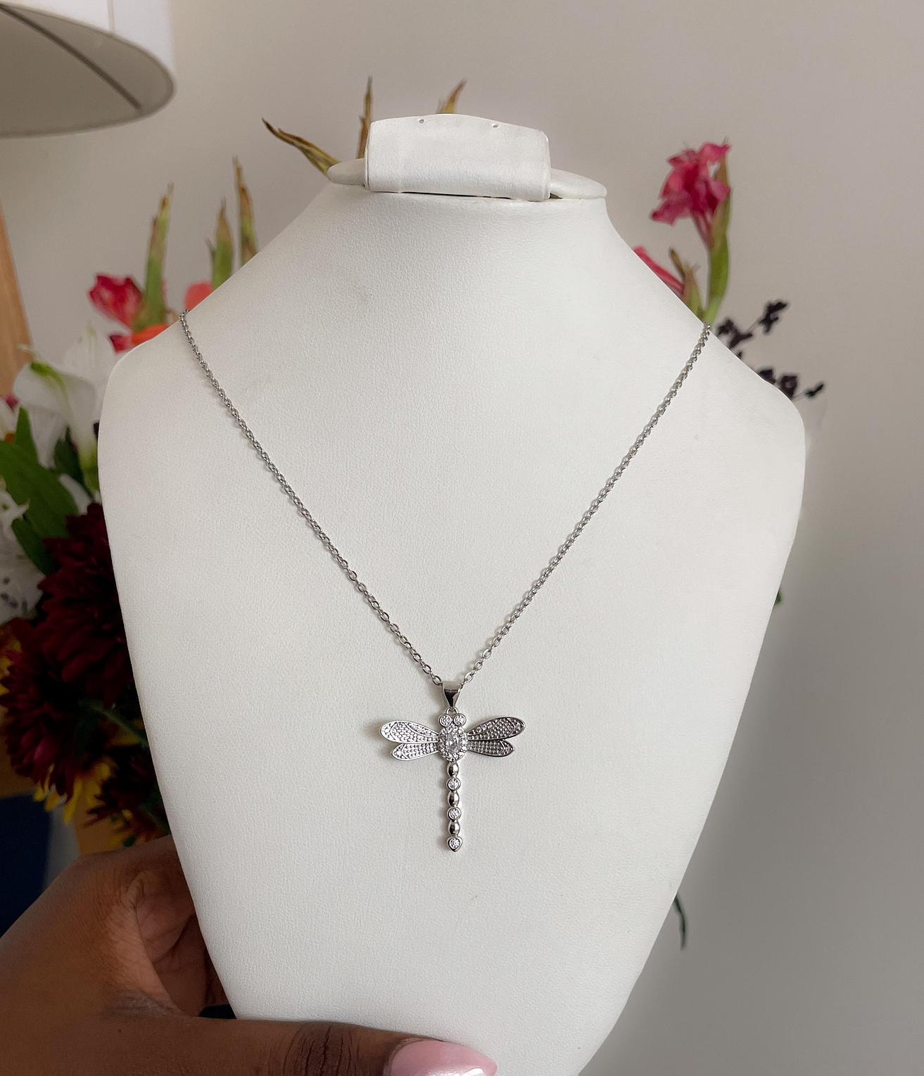 Capture the ethereal beauty of nature with the Sterling Dragonfly Serenity Necklace, a symbol of transformation and elegance. Its intricate design and brilliant shimmer offer a captivating addition to your jewelry collection.