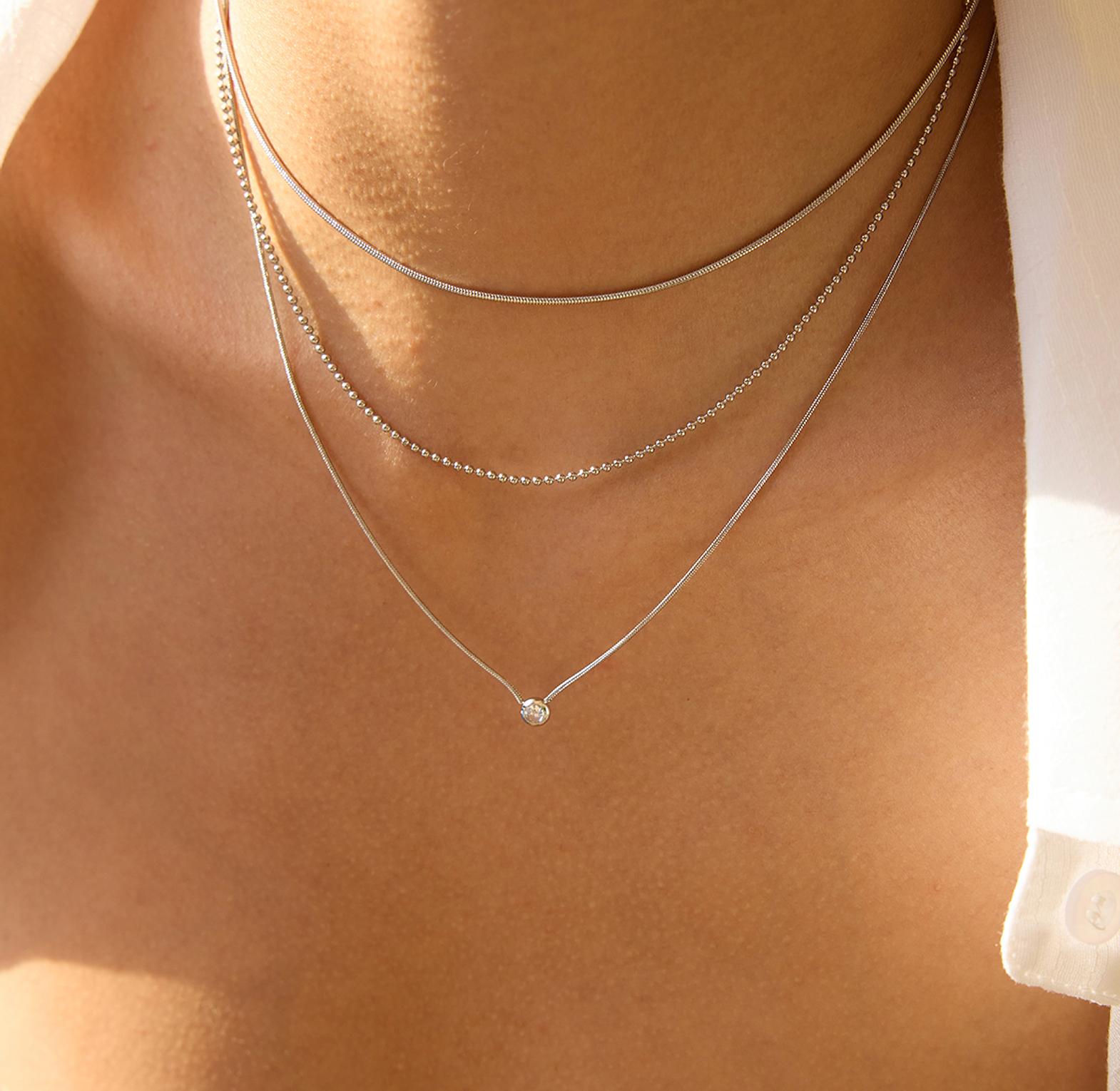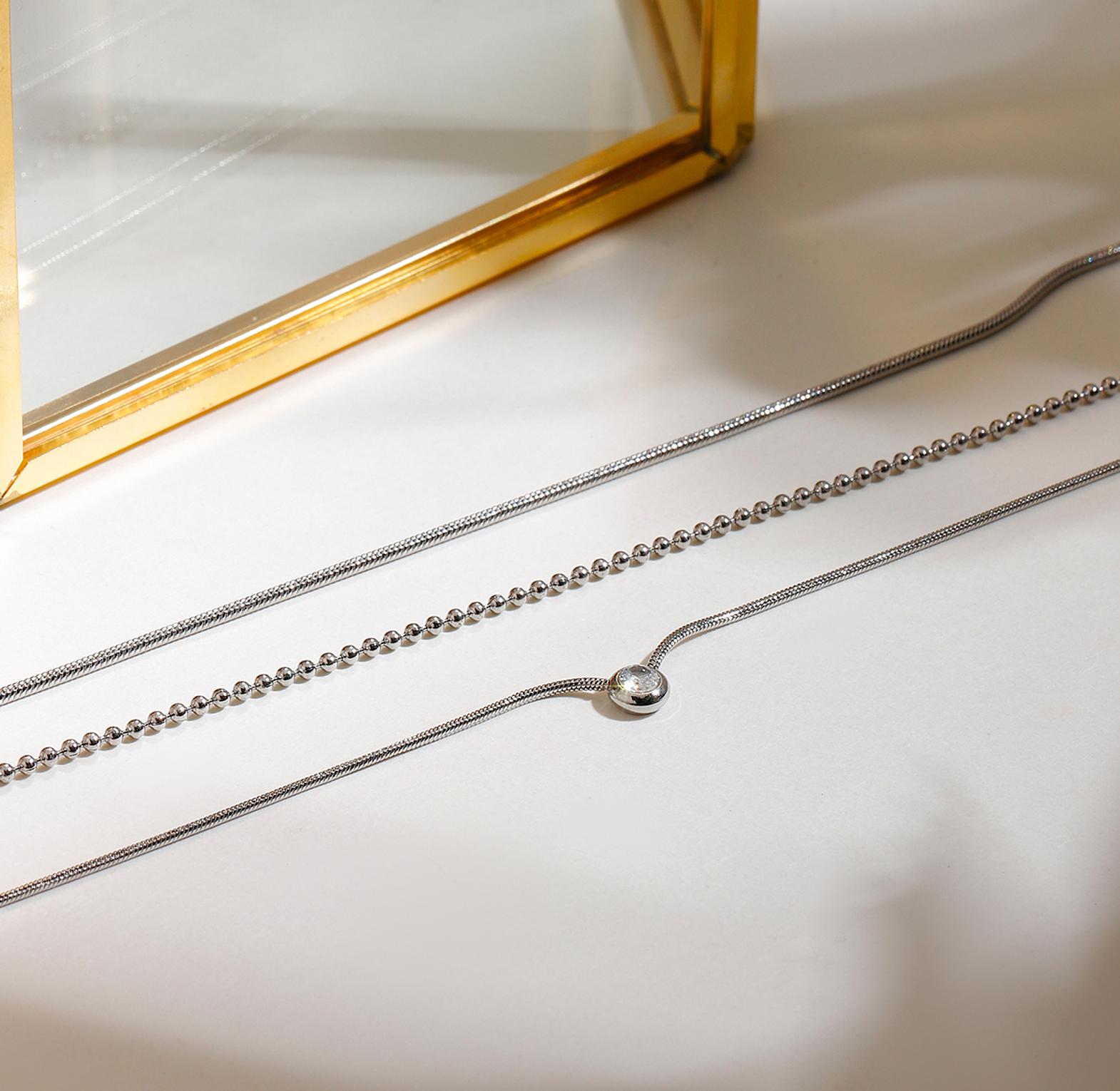 A sophisticated three-strand necklace that layers elegance and style in one statement piece.
